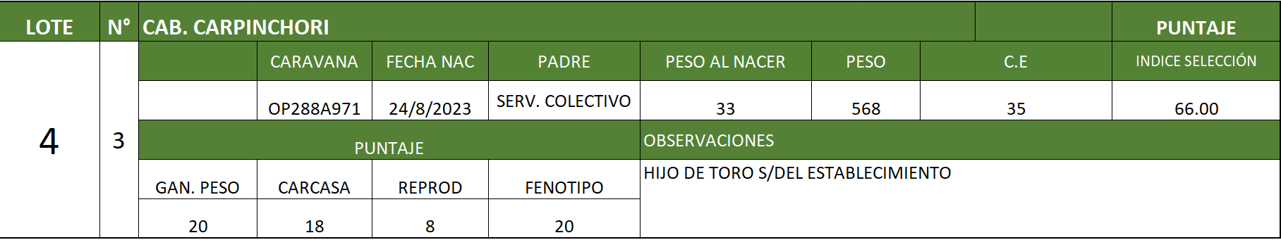 LOTE 4 - N° 3, Toro Lote Anterior Volver al remate Lote Siguiente Información del Lote Animal Pedigree Ofertar Contacto Entre Ríos - Información del Lote Identificador: #338301 Categoría Toros Departamento Entre Ríos Propietario CAB. CARPINCHORI Entre Ríos - Ofertar Fecha de cierre: 24 de Septiembre a las 19:00hs. Aún no tiene ofertas Animales: 3 Plazo: Contado 30 días 45 días 60 días 90 días 120 días 180 días Contado, 30 y 60 dias Su Oferta en $: − + Step: -200.000,00 / +200.000,00 Programar puja hasta: Programar puja hasta Aumentar puja programada 3900000 7500000 **Oferta al bulto Iniciar sesión para ofertar Ofertar Compra por $ 99.000.000,00 Ofertas Recibidas $ Fecha/Hora Estado Este lote aún no tiene preofertas. ¿Estás seguro de comprar el LOTE Toro por $ 99000000 ? 39 Visualizaciones ClicData Animal RP 3 PRECIO BASE 3500000.00 RP 3 PRECIO BASE 3500000.00 Información del Lote Contacto Empresa: JÁUREGUI LORDA S.R.L. Nombre*: E-mail* : Mensaje Enviar
