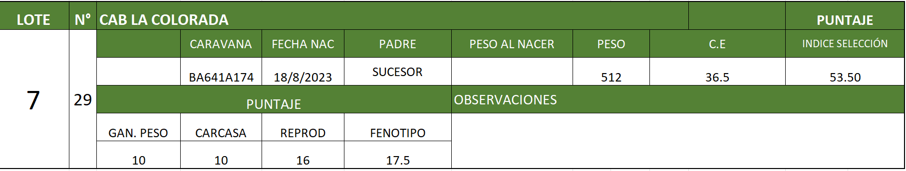 LOTE 7 - N° 29, Toro Lote Anterior Volver al remate Lote Siguiente Información del Lote Animal Pedigree Ofertar Contacto Entre Ríos - Información del Lote Identificador: #338308 Categoría Toros Departamento Entre Ríos Propietario CAB LA COLORADA Entre Ríos - Ofertar Fecha de cierre: 24 de Septiembre a las 19:00hs. Aún no tiene ofertas Animales: 29 Plazo: Contado 30 días 45 días 60 días 90 días 120 días 180 días Contado, 30 y 60 dias Su Oferta en $: − + Step: -200.000,00 / +200.000,00 Programar puja hasta: Programar puja hasta Aumentar puja programada 3900000 7500000 **Oferta al bulto Iniciar sesión para ofertar Ofertar Compra por $ 99.000.000,00 Ofertas Recibidas $ Fecha/Hora Estado Este lote aún no tiene preofertas. ¿Estás seguro de comprar el LOTE Toro por $ 99000000 ? 47 Visualizaciones ClicData Animal RP 29 PRECIO BASE 3500000.00 RP 29 PRECIO BASE 3500000.00 Información del Lote Contacto Empresa: JÁUREGUI LORDA S.R.L. Nombre*: E-mail* : Mensaje Enviar