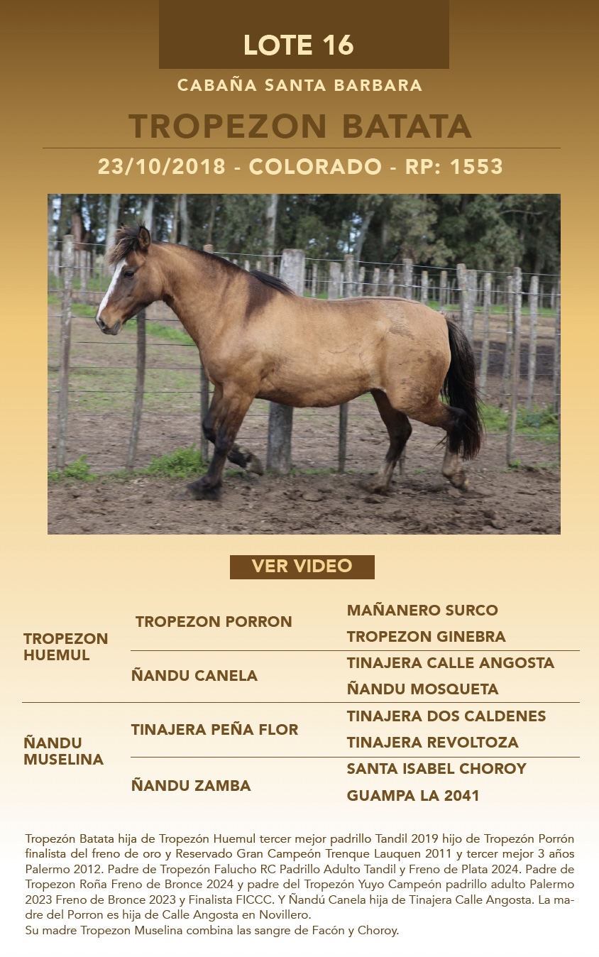 LOTE 16, TROPEZON BATATA Lote Anterior Volver al remate Lote Siguiente Ficha Contacto Ofertar Buenos Aires - Ficha del Lote Identificador: #338804 Categoría: Macho Pedigree Buenos Aires - Ofertar Fecha de cierre: 22 de Septiembre a las 14:00hs. Aún no tiene ofertas Plazo: Contado 30 días 45 días 60 días 90 días 120 días 180 días Contado, 30 y 60 dias Su Oferta en $: − + Step: -10.000,00 / +10.000,00 Programar puja hasta: Programar puja hasta Aumentar puja programada 270000 450000 **Oferta al bulto Iniciar sesión para ofertar Ofertar Compra por $ 99.000.000,00 Ofertas Recibidas $ Fecha/Hora Estado Este lote aún no tiene preofertas. ¿Estás seguro de comprar el LOTE TROPEZON BATATA por $ 99000000 ? 137 Visualizaciones ClicData Contacto Empresa: El Rincón Criollos Nombre*: Teléfono* : E-mail* : Mensaje Enviar