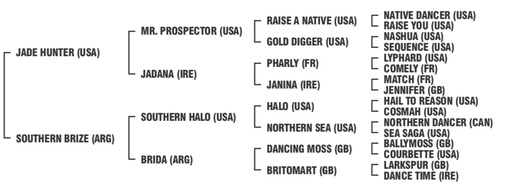 Southern Brize (ARG) (h. Southern Halo). No corrió, madre de- Turbina Atomica (ARG) (h. Robin Des Bois). No corrió, madre de-
