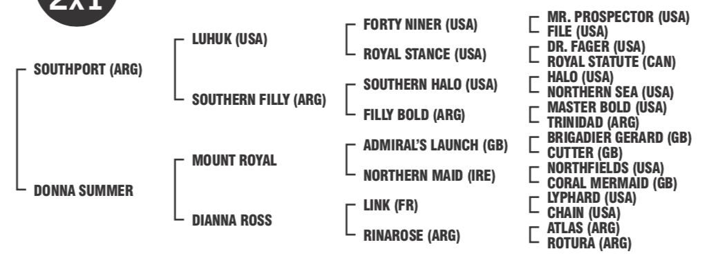 Por SOUTHPORT, ARG, 2001. Ganador en Maroñas, 4to en el Clasico Maroñas [G2], Padre de 8 generaciones en edad de correr, 33 hijos, 14 corrieron, 4 ganadores de 9 carreras, incluyendo South Pole, Detrusor, South Summer, South Model, South Beach. Hijo de Luhuk, padre de 48 ganadores clásicos, 2 campeones, incluyendo GUERNIKA (ARG) (Campeona en Argentina, US$ 260,221, Polla de Potrancas [G1], etc.), PALATINO (Campeón en Uruguay, 2do Gran Premio Maronas [Gr2]), CALIDOSCOPIO (ARG) (US$ 975,154, República Argentina [G1], etc.), AVANZADO (ARG) (US$ 886,188, Ancient Title Breeders' Cup H. [G1], etc.), EL GARUFA (ARG)(US$ 327,162, Estrellas Mile [G1], etc.), AUGURI (ARG) (US$ 196,325, Comparación [G2], etc.).