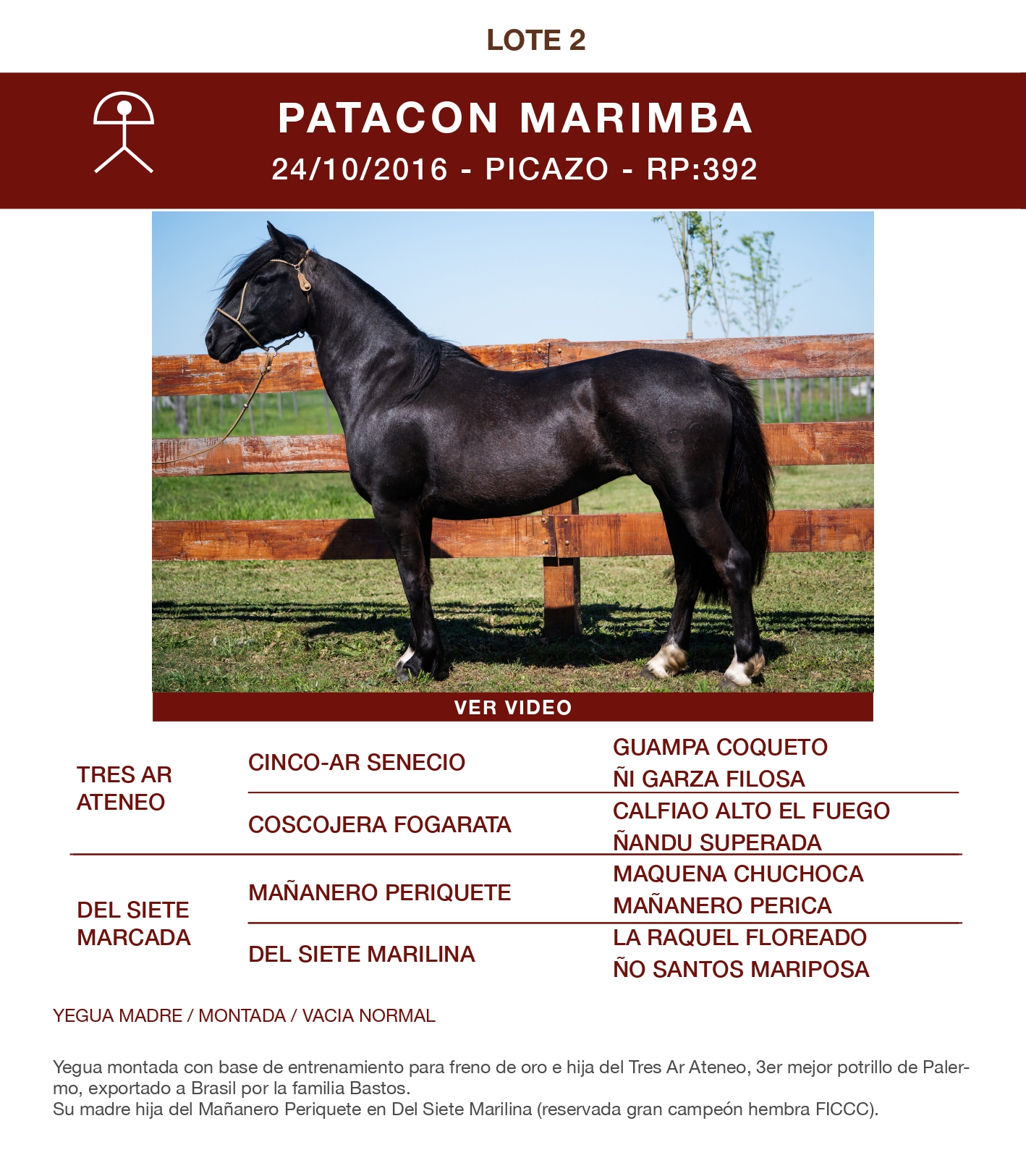 LOTE 2, PATACON MARIMBA 🔥 🔥 🔥 Lote Anterior Volver al remate Lote Siguiente Ficha Contacto Ofertar Buenos Aires - Ficha del Lote Identificador: #343910 Categoría: Yeguas RP: 392 Pedigree Descripción: Alzada 1,43 Torax 1,90 Caña 0,20 Buenos Aires - Ofertar Fecha de cierre: 14 de Octubre a las 13:30hs. Aún no tiene ofertas Plazo: Contado 30 días 45 días 60 días 90 días 120 días 180 días Contado, 30 y 60 dias Su Oferta en $: − + Step: -20.000,00 / +20.000,00 Programar puja hasta: Programar puja hasta Aumentar puja programada 390000 750000 **Oferta al bulto Iniciar sesión para ofertar Ofertar Compra por $ 99.000.000,00 Ofertas Recibidas $ Fecha/Hora Estado Este lote aún no tiene preofertas. ¿Estás seguro de comprar el LOTE PATACON MARIMBA por $ 99000000 ? 251 Visualizaciones ClicData Contacto Empresa: El Rincón Criollos Nombre*: Teléfono* : E-mail* : Mensaje Enviar Registrese gratis Este contenido Exclusivo está disponible sólo para usuarios registrados Ingresar