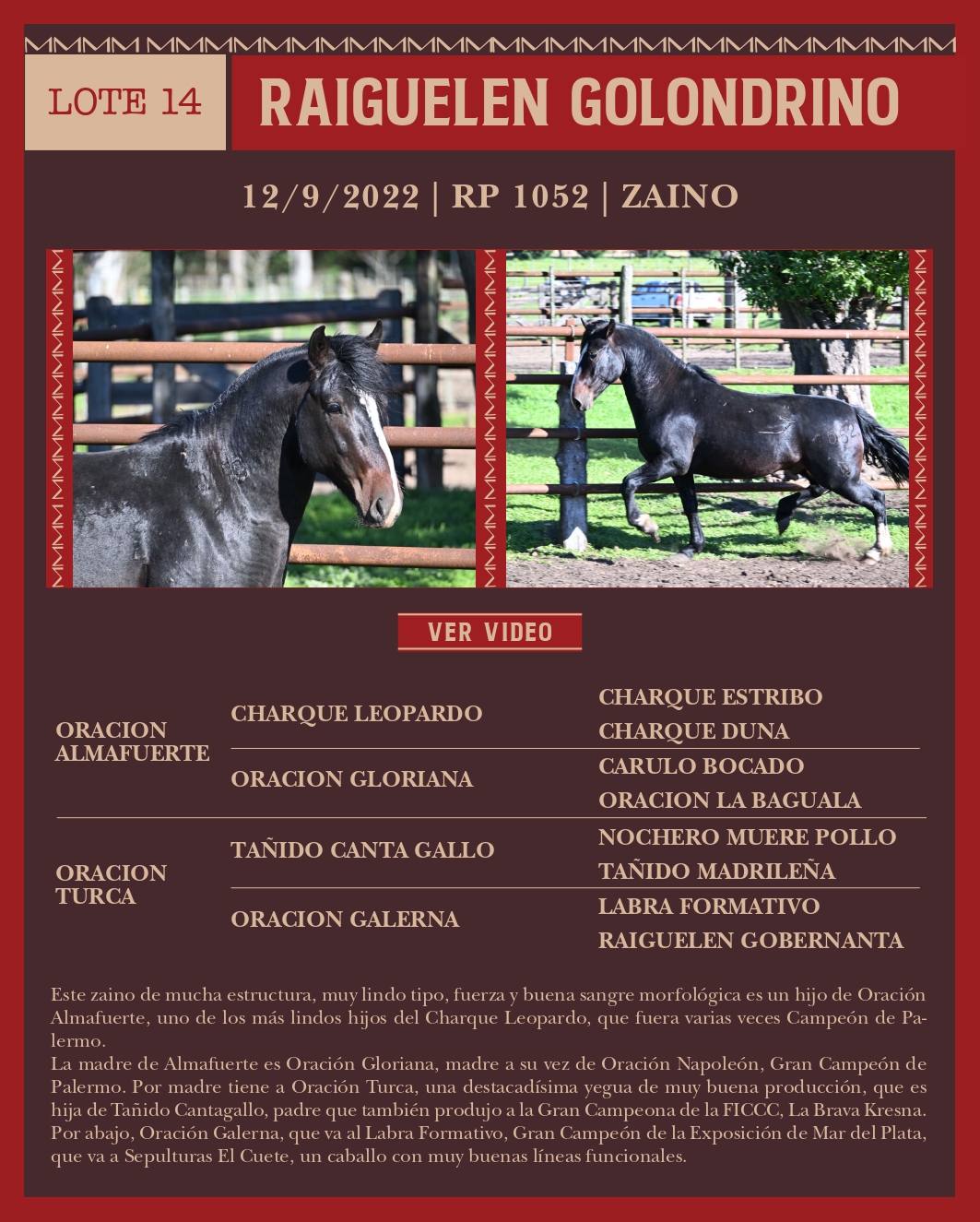 LOTE 14, RAIGUELEN GOLONDRINO Lote Anterior Volver al remate Lote Siguiente Ficha Contacto Ofertar Buenos Aires - Ficha del Lote Identificador: #344819 Categoría: Macho RP: 1052 Pedigree Buenos Aires - Ofertar Fecha de cierre: 20 de Octubre a las 14:00hs. Aún no tiene ofertas Plazo: Contado 30 días 45 días 60 días 90 días 120 días 180 días Contado, 30 y 60 dias Su Oferta en $: − + Step: -20.000,00 / +20.000,00 Programar puja hasta: Programar puja hasta Aumentar puja programada 290000 650000 **Oferta al bulto Iniciar sesión para ofertar Ofertar Compra por $ 99.000.000,00 Ofertas Recibidas $ Fecha/Hora Estado Este lote aún no tiene preofertas. ¿Estás seguro de comprar el LOTE RAIGUELEN GOLONDRINO por $ 99000000 ? 156 Visualizaciones ClicData Contacto Empresa: El Rincón Criollos Nombre*: Teléfono* : E-mail* : Mensaje Enviar Registrese gratis Este contenido Exclusivo está disponible sólo para usuarios registrados Ingresar