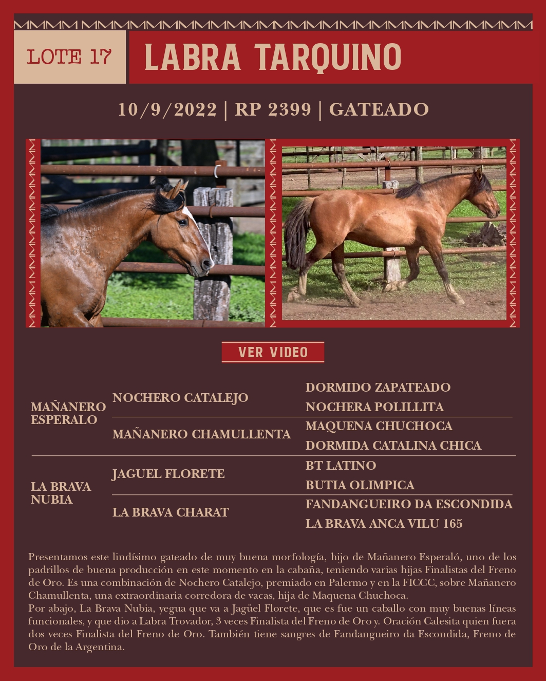 LOTE 17, LABRA TARQUINO Lote Anterior Volver al remate Ficha Contacto Ofertar Buenos Aires - Ficha del Lote Identificador: #344822 Categoría: Macho RP: 2399 Pedigree Buenos Aires - Ofertar Fecha de cierre: 20 de Octubre a las 14:00hs. Aún no tiene ofertas Plazo: Contado 30 días 45 días 60 días 90 días 120 días 180 días Contado, 30 y 60 dias Su Oferta en $: − + Step: -20.000,00 / +20.000,00 Programar puja hasta: Programar puja hasta Aumentar puja programada 290000 650000 **Oferta al bulto Iniciar sesión para ofertar Ofertar Compra por $ 99.000.000,00 Ofertas Recibidas $ Fecha/Hora Estado Este lote aún no tiene preofertas. ¿Estás seguro de comprar el LOTE LABRA TARQUINO por $ 99000000 ? 165 Visualizaciones ClicData Contacto Empresa: El Rincón Criollos Nombre*: Teléfono* : E-mail* : Mensaje Enviar Registrese gratis Este contenido Exclusivo está disponible sólo para usuarios registrados Ingresar