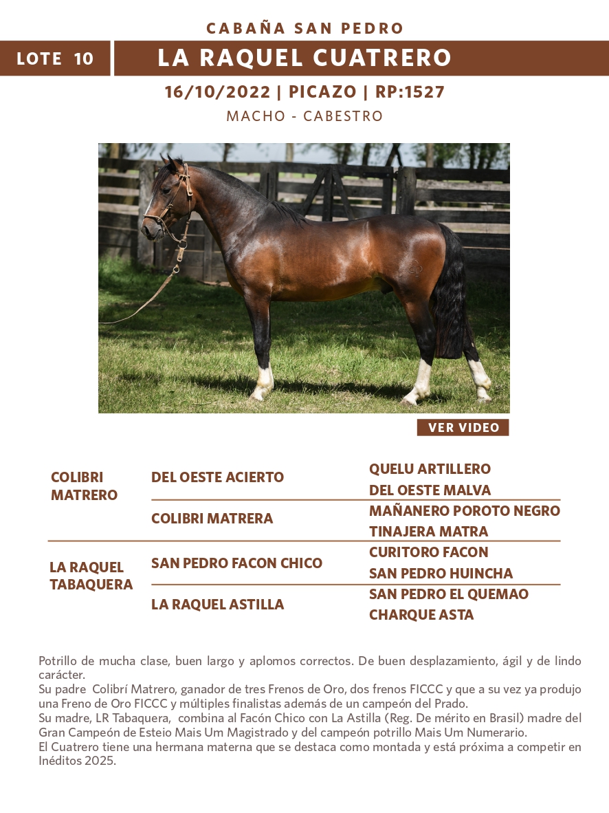 LOTE 10, LA RAQUEL CUATRERO 🔥 🔥 🔥 Lote Anterior Volver al remate Lote Siguiente Ficha Contacto Ofertar Buenos Aires - Ficha del Lote Identificador: #345608 Categoría: Cabestros Altura: 1,42 Torax: 1,74 Caña: 19,5 RP: 1527 Pedigree Buenos Aires - Ofertar Se vende el 50% del potrillo. Fecha de cierre: 28 de Octubre a las 15:00hs. Aún no tiene ofertas Plazo: Contado 30 días 45 días 60 días 90 días 120 días 180 días Contado, 30 y 60 dias Su Oferta en $: − + Step: -20.000,00 / +20.000,00 Programar puja hasta: Programar puja hasta Aumentar puja programada 740000 1100000 **Oferta al bulto Iniciar sesión para ofertar Ofertar Compra por $ 99.000.000,00 Ofertas Recibidas $ Fecha/Hora Estado Este lote aún no tiene preofertas. ¿Estás seguro de comprar el LOTE LA RAQUEL CUATRERO por $ 99000000 ? 445 Visualizaciones ClicData Contacto Empresa: El Rincón Criollos Nombre*: Teléfono* : E-mail* : Mensaje Enviar Registrese gratis Este contenido Exclusivo está disponible sólo para usuarios registrados Ingresar