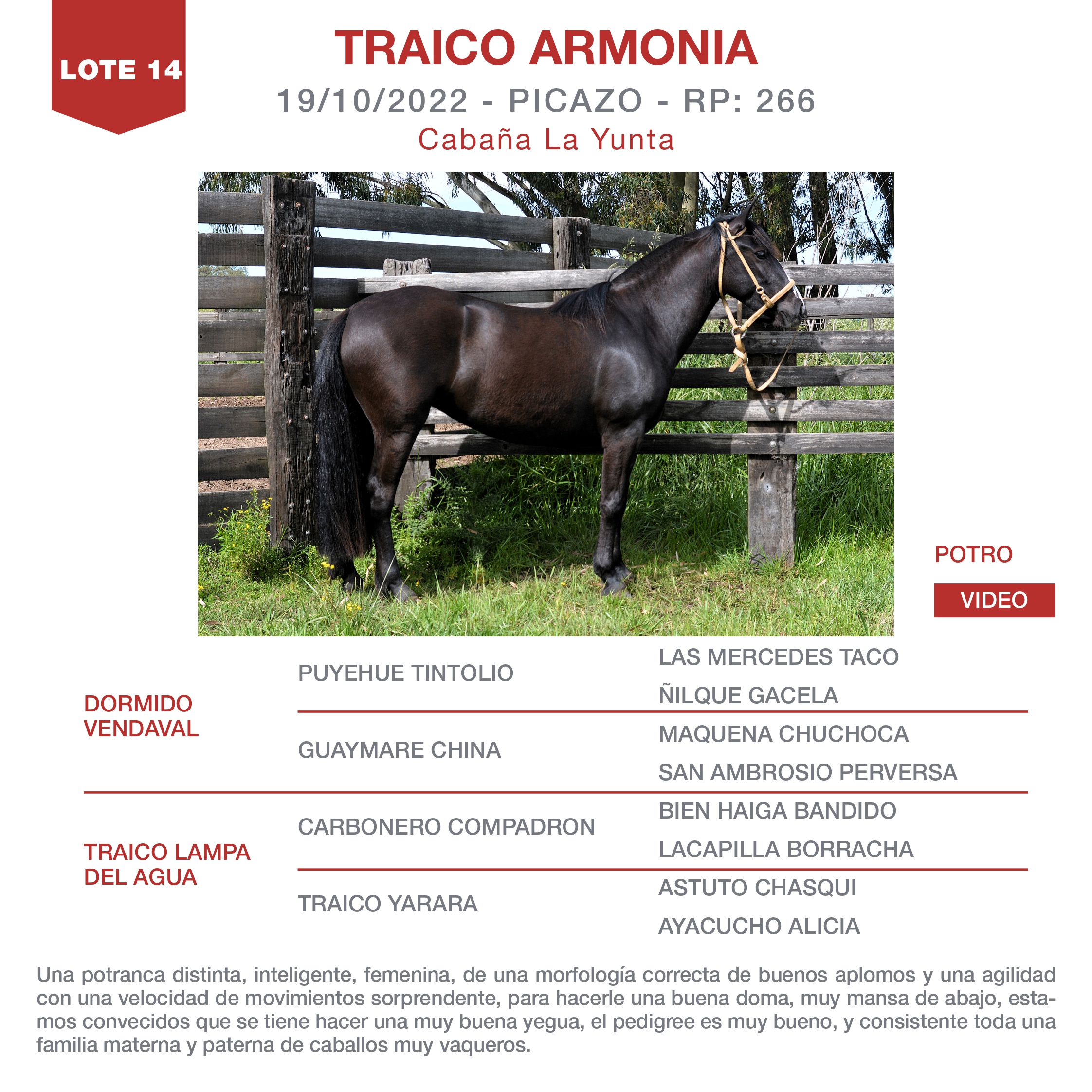 LOTE 14, TRAICO ARMONIA 🔥 🔥 🔥 Lote Anterior Volver al remate Ficha Contacto Ofertar Buenos Aires - Ficha del Lote Identificador: #348644 Categoría: Yeguas Altura: 1,430 Torax: 1,77 Caña: 0.190 Edad: 19/10/22 Pedigree Descripción: POTRO Buenos Aires - Ofertar Fecha de cierre: 18 de Noviembre a las 15:00hs. Aún no tiene ofertas Plazo: Contado 30 días 45 días 60 días 90 días 120 días 180 días Contado, 30 y 60 dias Su Oferta en $: − + Step: -20.000,00 / +20.000,00 Programar puja hasta: Programar puja hasta Aumentar puja programada 390000 750000 **Oferta al bulto Iniciar sesión para ofertar Ofertar Compra por $ 99.000.000,00 Ofertas Recibidas $ Fecha/Hora Estado Este lote aún no tiene preofertas. ¿Estás seguro de comprar el LOTE TRAICO ARMONIA por $ 99000000 ? 301 Visualizaciones ClicData Contacto Empresa: El Rincón Criollos Nombre*: Teléfono* : E-mail* : Mensaje Enviar Registrese gratis Este contenido Exclusivo está disponible sólo para usuarios registrados Ingresar