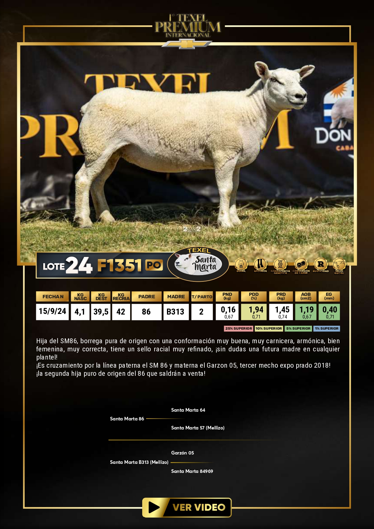 LOTE 24 - Texel Santa Marta, Borregas a remate en 1º Texel Premium Internacional, Canelones