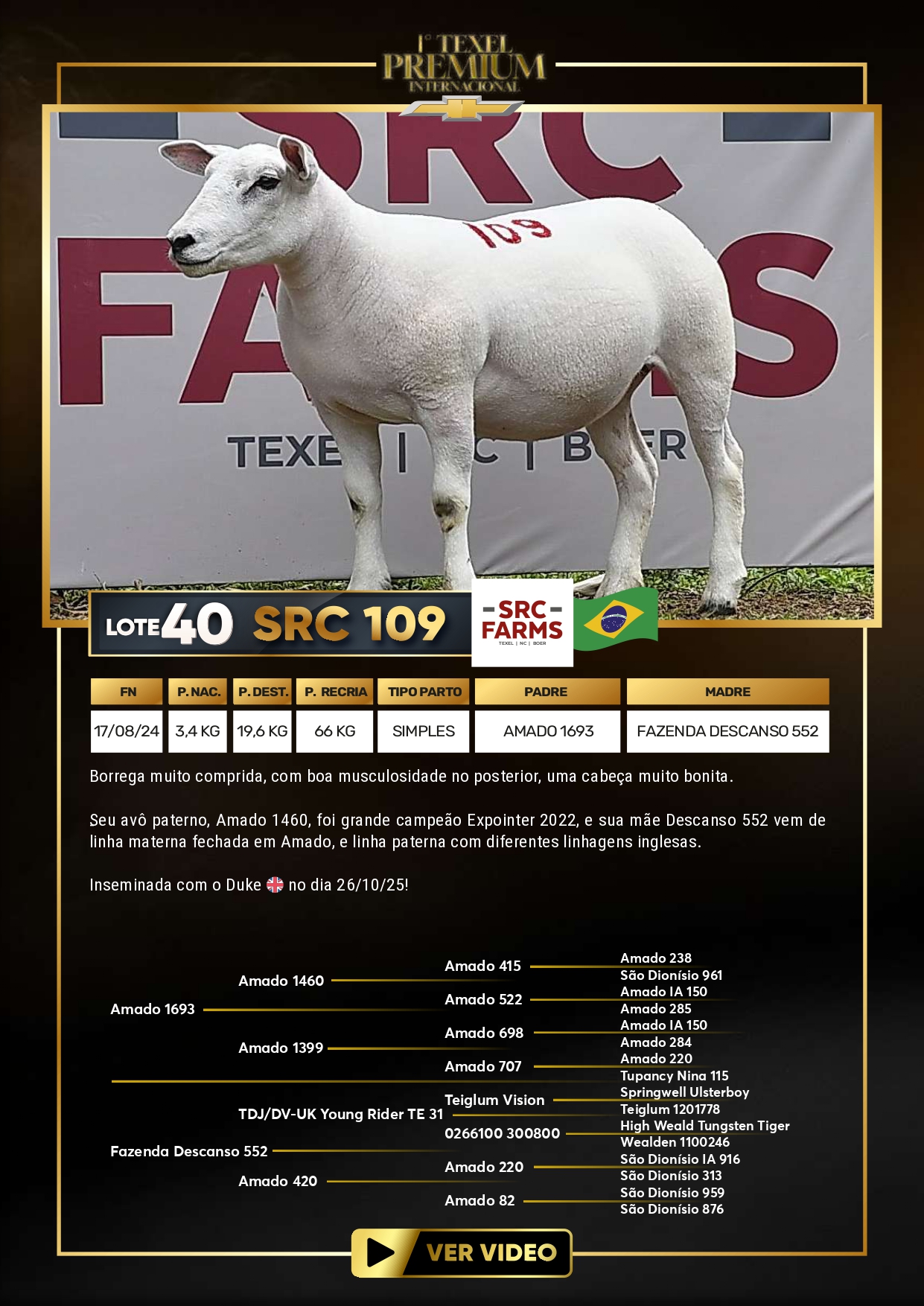 LOTE 40 - SRC Farms, Borregas a remate en 1º Texel Premium Internacional, Brasil