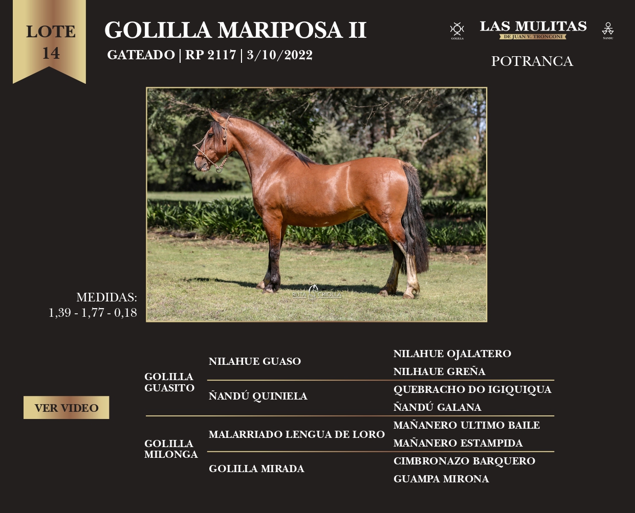 LOTE 14, Golilla Mariposa II 🔥 🔥 🔥 Lote Anterior Volver al remate Lote Siguiente Ficha Contacto Ofertar Buenos Aires - Ficha del Lote Identificador: #349744 Categoría: Potrancas Altura: 1,39 Torax: 1,77 Caña: 0,18 Pedigree Buenos Aires - Ofertar Fecha de cierre: 26 de Noviembre a las 15:00hs. Aún no tiene ofertas Plazo: Contado 30 días 45 días 60 días 90 días 120 días 180 días Contado, 30 y 60 dias Su Oferta en $: − + Step: -20.000,00 / +20.000,00 Programar puja hasta: Programar puja hasta Aumentar puja programada 840000 1200000 **Oferta al bulto Iniciar sesión para ofertar Ofertar Compra por $ 99.000.000,00 Ofertas Recibidas $ Fecha/Hora Estado Este lote aún no tiene preofertas. ¿Estás seguro de comprar el LOTE Golilla Mariposa II por $ 99000000 ? 580 Visualizaciones ClicData Contacto Empresa: El Rincón Criollos Nombre*: Teléfono* : E-mail* : Mensaje Enviar Registrese gratis Este contenido Exclusivo está disponible sólo para usuarios registrados Ingresar
