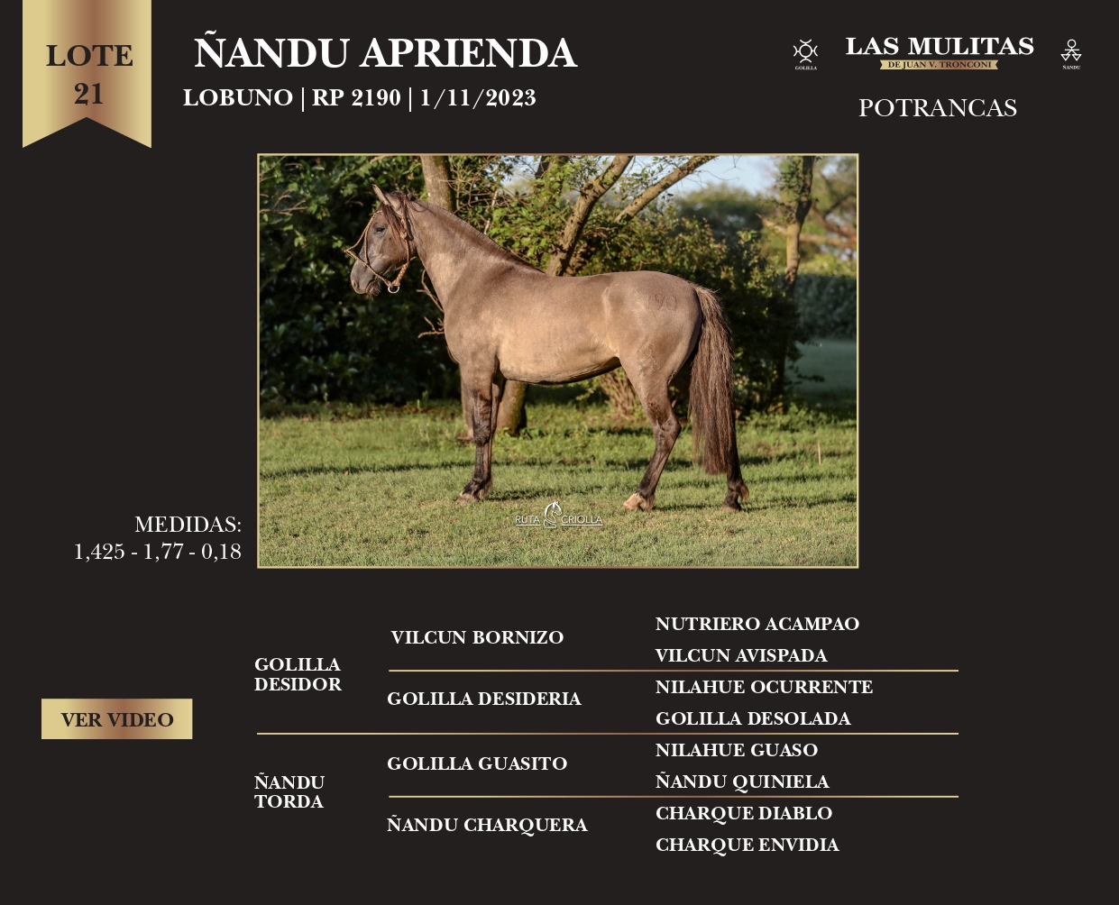 LOTE 21, Ñandu Aprienda Lote Anterior Volver al remate Ficha Contacto Ofertar Buenos Aires - Ficha del Lote Identificador: #349751 Categoría: Potrancas Altura: 1,425 Torax: 1,77 Caña: 0,18 Pedigree Buenos Aires - Ofertar Fecha de cierre: 26 de Noviembre a las 15:00hs. Aún no tiene ofertas Plazo: Contado 30 días 45 días 60 días 90 días 120 días 180 días Contado, 30 y 60 dias Su Oferta en $: − + Step: -20.000,00 / +20.000,00 Programar puja hasta: Programar puja hasta Aumentar puja programada 340000 700000 **Oferta al bulto Iniciar sesión para ofertar Ofertar Compra por $ 99.000.000,00 Ofertas Recibidas $ Fecha/Hora Estado Este lote aún no tiene preofertas. ¿Estás seguro de comprar el LOTE Ñandu Aprienda por $ 99000000 ? 383 Visualizaciones ClicData Contacto Empresa: El Rincón Criollos Nombre*: Teléfono* : E-mail* : Mensaje Enviar Registrese gratis Este contenido Exclusivo está disponible sólo para usuarios registrados Ingresar