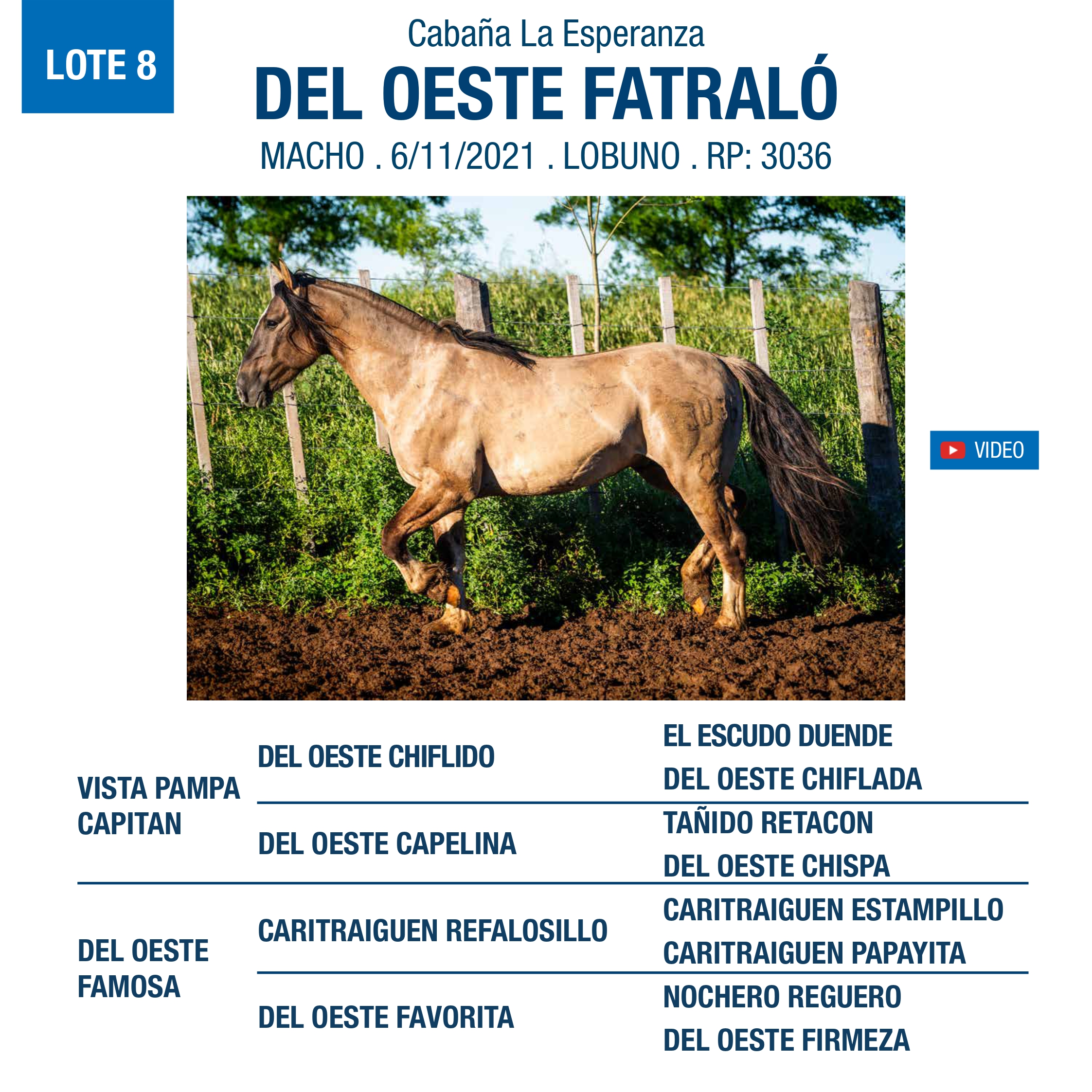 LOTE 8, DEL OESTE FATRALÓ 🔥 🔥 🔥 Lote Anterior Volver al remate Lote Siguiente Ficha Contacto Ofertar Buenos Aires - Ficha del Lote Identificador: #350910 Categoría: Macho Pedigree Buenos Aires - Ofertar Fecha de cierre: 04 de Diciembre a las 15:00hs. Aún no tiene ofertas Plazo: Contado 30 días 45 días 60 días 90 días 120 días 180 días Contado, 30 y 60 dias Su Oferta en $: − + Step: -5.000,00 / +5.000,00 Programar puja hasta: Programar puja hasta Aumentar puja programada 310000 400000 **Oferta al bulto Iniciar sesión para ofertar Ofertar Compra por $ 99.000.000,00 Ofertas Recibidas $ Fecha/Hora Estado Este lote aún no tiene preofertas. ¿Estás seguro de comprar el LOTE DEL OESTE FATRALÓ por $ 99000000 ? 333 Visualizaciones ClicData Contacto Empresa: El Rincón Criollos Nombre*: Teléfono* : E-mail* : Mensaje Enviar Registrese gratis Este contenido Exclusivo está disponible sólo para usuarios registrados Ingresar