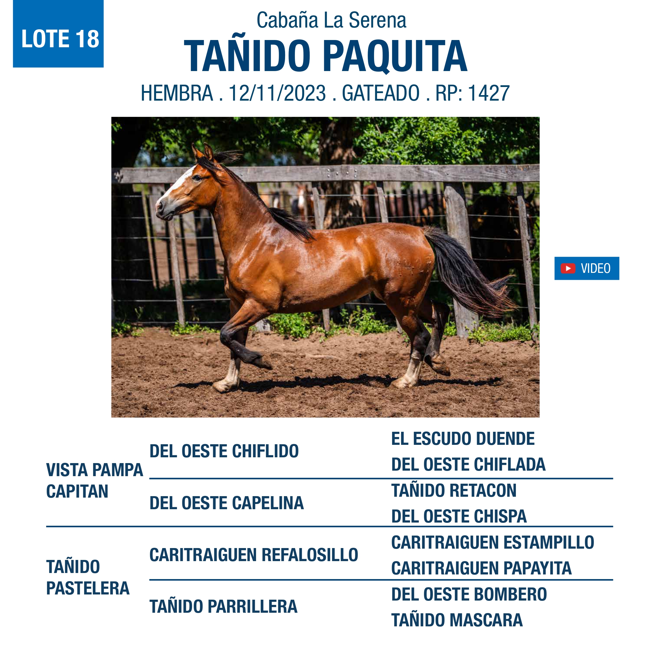 LOTE 18, TAÑIDO PAQUITA 🔥 🔥 🔥 Lote Anterior Volver al remate Lote Siguiente Ficha Contacto Ofertar Buenos Aires - Ficha del Lote Identificador: #351621 Categoría: Yeguas Pedigree Buenos Aires - Ofertar Fecha de cierre: 03 de Diciembre a las 15:00hs. Aún no tiene ofertas Plazo: Contado 30 días 45 días 60 días 90 días 120 días 180 días Contado, 30 y 60 dias Su Oferta en $: − + Step: -5.000,00 / +5.000,00 Programar puja hasta: Programar puja hasta Aumentar puja programada 410000 500000 **Oferta al bulto Iniciar sesión para ofertar Ofertar Compra por $ 99.000.000,00 Ofertas Recibidas $ Fecha/Hora Estado Este lote aún no tiene preofertas. ¿Estás seguro de comprar el LOTE TAÑIDO PAQUITA por $ 99000000 ? 299 Visualizaciones ClicData Contacto Empresa: El Rincón Criollos Nombre*: Teléfono* : E-mail* : Mensaje Enviar Registrese gratis Este contenido Exclusivo está disponible sólo para usuarios registrados Ingresar