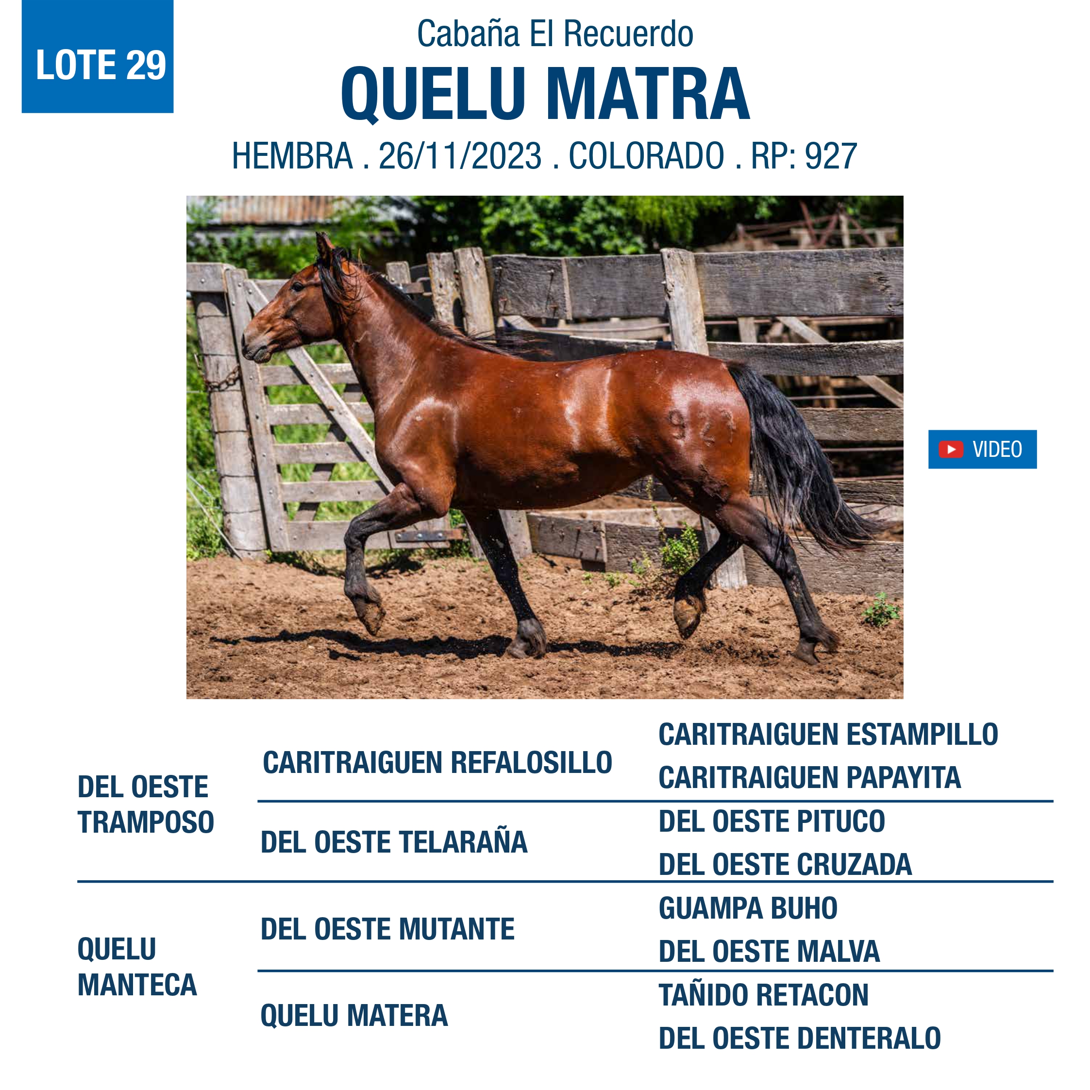 LOTE 29, QUELU MATRA Lote Anterior Volver al remate Lote Siguiente Ficha Contacto Ofertar Buenos Aires - Ficha del Lote Identificador: #351632 Categoría: Yeguas Pedigree Buenos Aires - Ofertar Fecha de cierre: 03 de Diciembre a las 15:00hs. Aún no tiene ofertas Plazo: Contado 30 días 45 días 60 días 90 días 120 días 180 días Contado, 30 y 60 dias Su Oferta en $: − + Step: -5.000,00 / +5.000,00 Programar puja hasta: Programar puja hasta Aumentar puja programada 410000 500000 **Oferta al bulto Iniciar sesión para ofertar Ofertar Compra por $ 99.000.000,00 Ofertas Recibidas $ Fecha/Hora Estado Este lote aún no tiene preofertas. ¿Estás seguro de comprar el LOTE QUELU MATRA por $ 99000000 ? 164 Visualizaciones ClicData Contacto Empresa: El Rincón Criollos Nombre*: Teléfono* : E-mail* : Mensaje Enviar Registrese gratis Este contenido Exclusivo está disponible sólo para usuarios registrados Ingresar