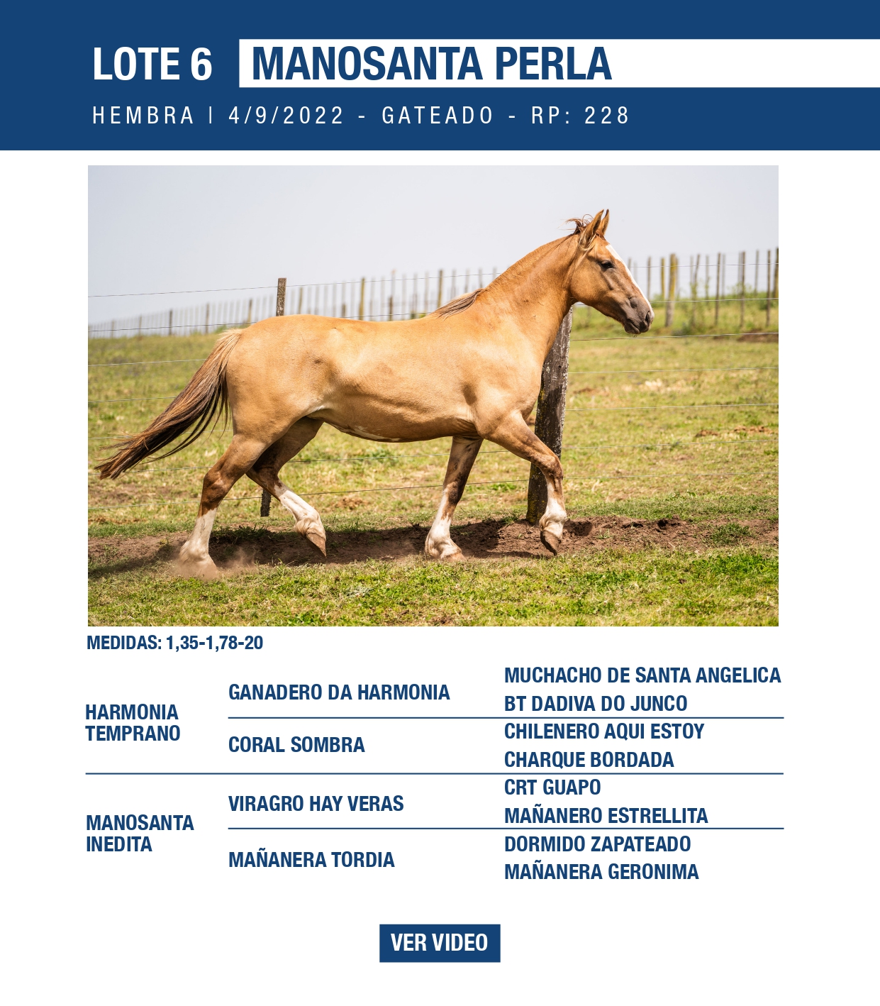 LOTE 6, MANOSANTA PERLA 🔥 🔥 🔥 Lote Anterior Volver al remate Lote Siguiente Ficha Contacto Ofertar Buenos Aires - Ficha del Lote Identificador: #352694 Categoría: Yeguas Altura: 1,35 Torax: 1,78 Caña: 20 Pedigree Buenos Aires - Ofertar Fecha de cierre: 12 de Diciembre a las 15:00hs. Aún no tiene ofertas Plazo: Contado 30 días 45 días 60 días 90 días 120 días 180 días Contado, 30 y 60 dias Su Oferta en $: − + Step: -20.000,00 / +20.000,00 Programar puja hasta: Programar puja hasta Aumentar puja programada 590000 950000 **Oferta al bulto Iniciar sesión para ofertar Ofertar Compra por $ 99.000.000,00 Ofertas Recibidas $ Fecha/Hora Estado Este lote aún no tiene preofertas. ¿Estás seguro de comprar el LOTE MANOSANTA PERLA por $ 99000000 ? 33 Visualizaciones ClicData Contacto Empresa: El Rincón Criollos Nombre*: Teléfono* : E-mail* : Mensaje Enviar Registrese gratis Este contenido Exclusivo está disponible sólo para usuarios registrados Ingresar