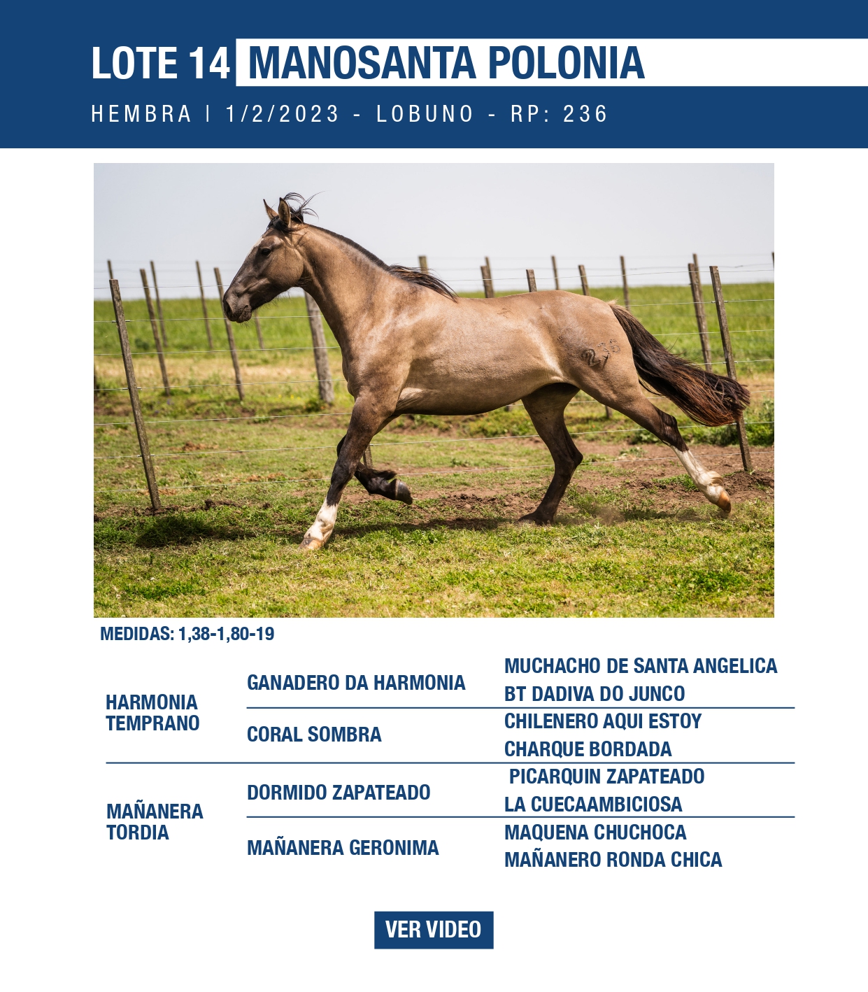 LOTE 14, MANOSANTA POLONIA Lote Anterior Volver al remate Lote Siguiente Ficha Contacto Ofertar Buenos Aires - Ficha del Lote Identificador: #352702 Categoría: Yeguas Altura: 1,38 Torax: 1,80 Caña: 19 Pedigree Buenos Aires - Ofertar Fecha de cierre: 12 de Diciembre a las 15:00hs. Aún no tiene ofertas Plazo: Contado 30 días 45 días 60 días 90 días 120 días 180 días Contado, 30 y 60 dias Su Oferta en $: − + Step: -20.000,00 / +20.000,00 Programar puja hasta: Programar puja hasta Aumentar puja programada 590000 950000 **Oferta al bulto Iniciar sesión para ofertar Ofertar Compra por $ 99.000.000,00 Ofertas Recibidas $ Fecha/Hora Estado Este lote aún no tiene preofertas. ¿Estás seguro de comprar el LOTE MANOSANTA POLONIA por $ 99000000 ? 22 Visualizaciones ClicData Contacto Empresa: El Rincón Criollos Nombre*: Teléfono* : E-mail* : Mensaje Enviar Registrese gratis Este contenido Exclusivo está disponible sólo para usuarios registrados Ingresar