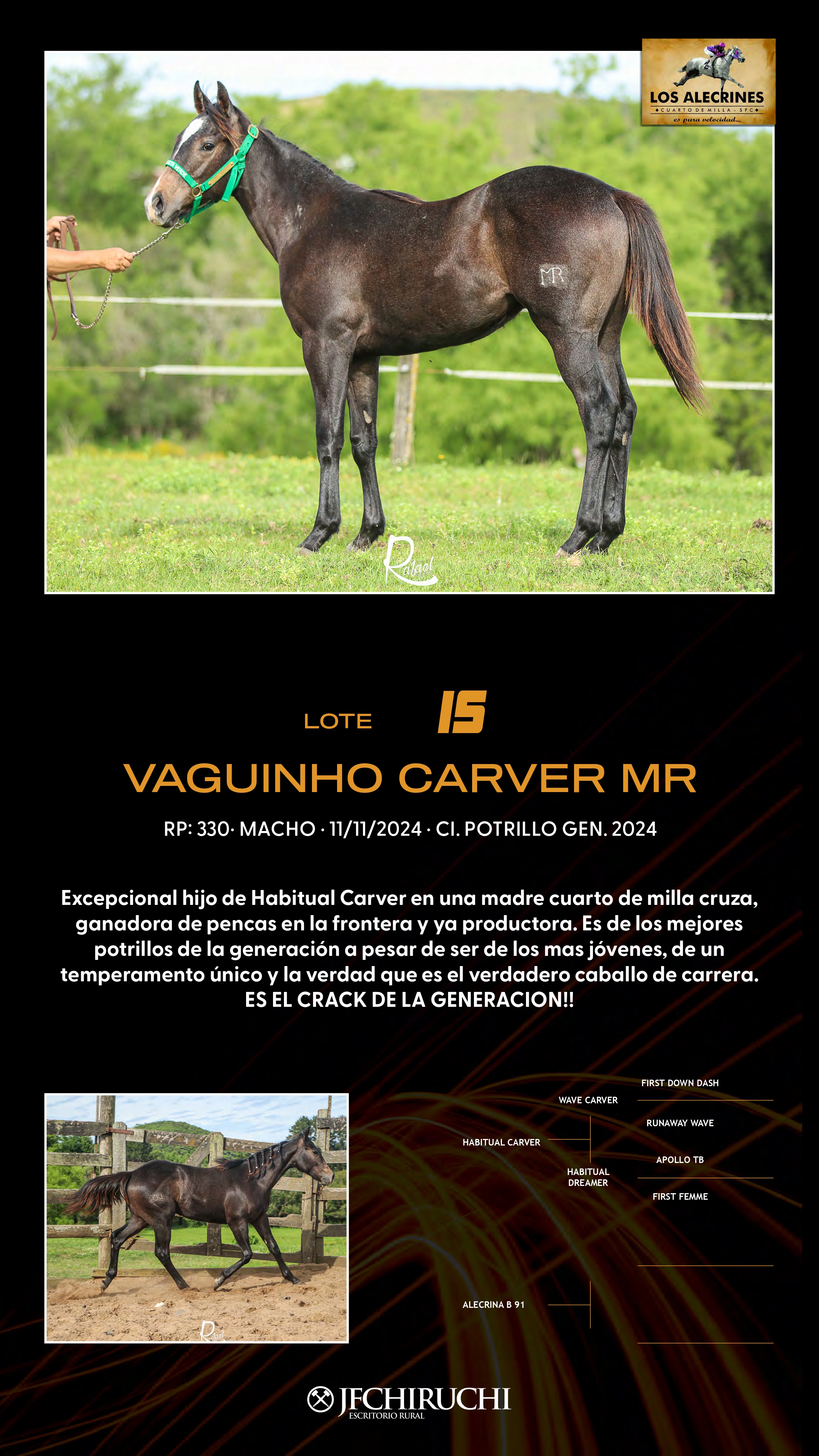 LOTE 15, VAGUINHO CARVER MR 🔥 🔥 🔥 Lote Anterior Volver al remate Lote Siguiente Ficha Contacto San José - Ficha del Lote Identificador: #352946 Categoría: Potrillo RP: 330 Pedigree San José - 12 Visualizaciones ClicData Contacto Empresa: JUAN FRANCISCO CHIRUCHI Nombre*: Teléfono* : E-mail* : Mensaje Por informes y consultas 099977007 Enviar Registrese gratis Este contenido Exclusivo está disponible sólo para usuarios registrados Ingresar