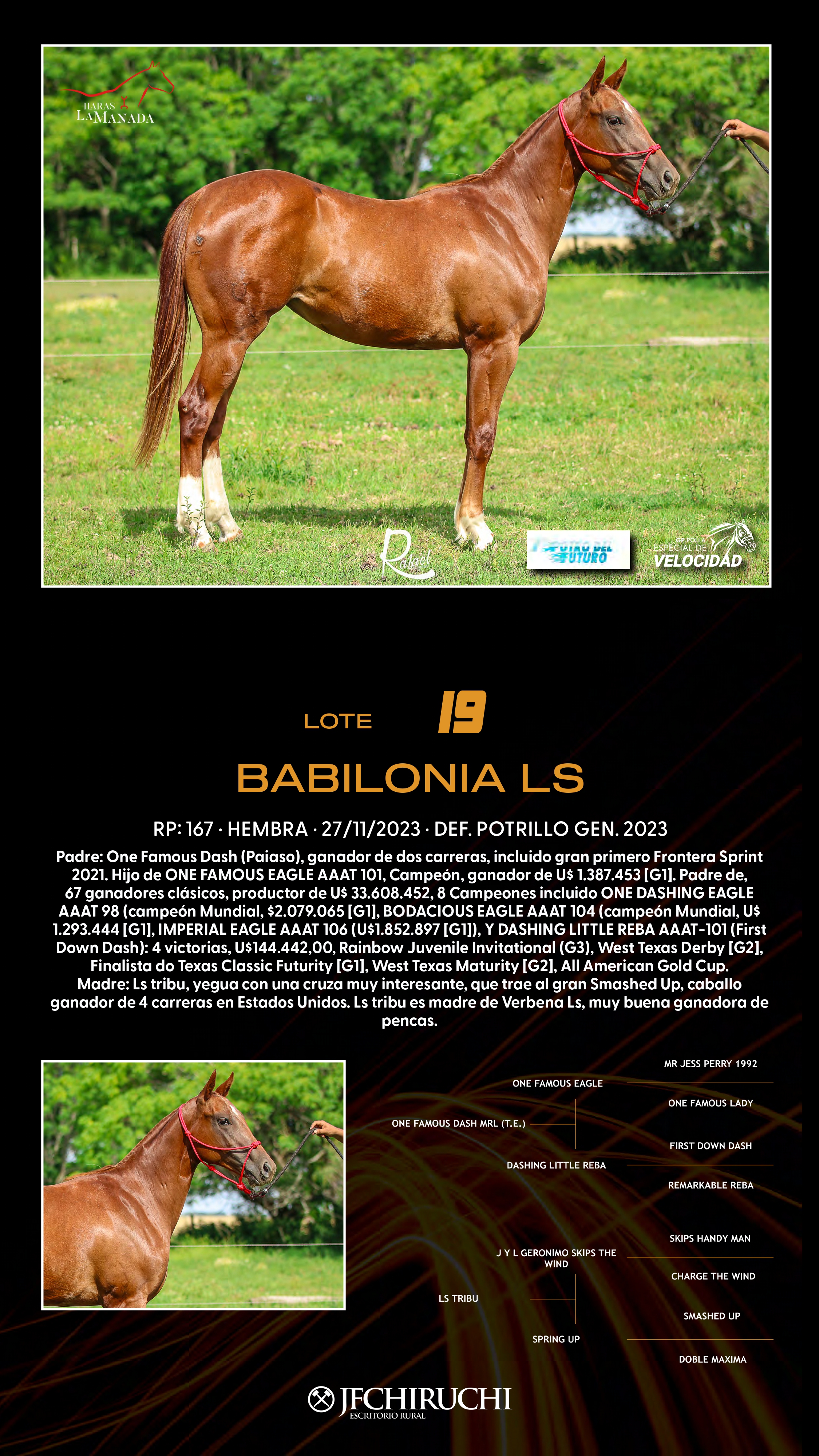 LOTE 19, BABILONIA LS 🔥 🔥 🔥 Lote Anterior Volver al remate Lote Siguiente Ficha Contacto San José - Ficha del Lote Identificador: #352950 Categoría: Potrillo RP: 167 Pedigree San José - 13 Visualizaciones ClicData Contacto Empresa: JUAN FRANCISCO CHIRUCHI Nombre*: Teléfono* : E-mail* : Mensaje Por informes y consultas 099977007 Enviar Registrese gratis Este contenido Exclusivo está disponible sólo para usuarios registrados Ingresar