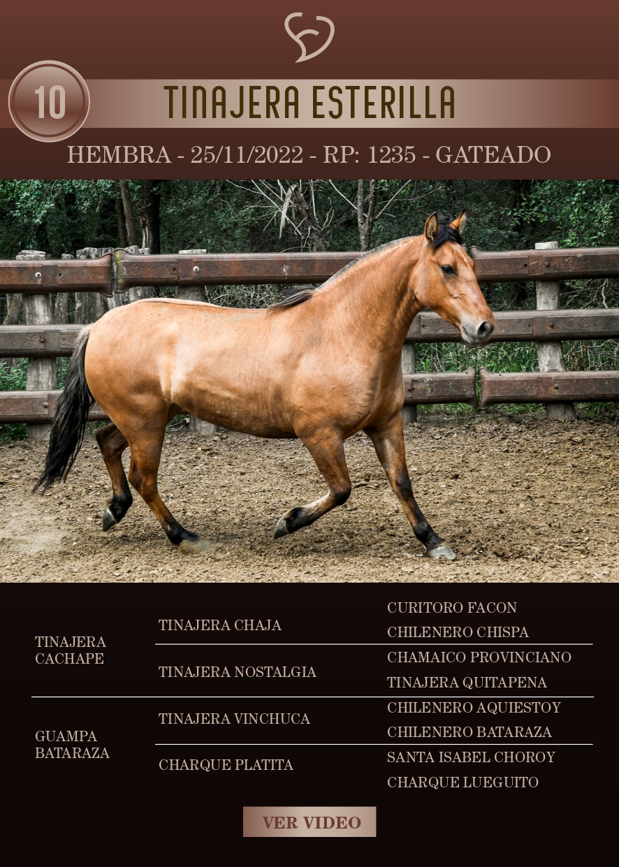 LOTE 10, TINAJERA ESTERILLA 🔥 🔥 🔥 Lote Anterior Volver al remate Lote Siguiente Ficha Contacto Ofertar Buenos Aires - Ficha del Lote Identificador: #353133 Categoría: Yeguas Altura: 1.36 Torax: 1.81 Caña: 0.18 Pedigree Buenos Aires - Ofertar Fecha de cierre: 18 de Diciembre a las 15:00hs. Aún no tiene ofertas Plazo: Contado 30 días 45 días 60 días 90 días 120 días 180 días Contado, 30 y 60 dias Su Oferta en $: − + Step: -10.000,00 / +10.000,00 Programar puja hasta: Programar puja hasta Aumentar puja programada 620000 800000 **Oferta al bulto Iniciar sesión para ofertar Ofertar Compra por $ 99.000.000,00 Ofertas Recibidas $ Fecha/Hora Estado Este lote aún no tiene preofertas. ¿Estás seguro de comprar el LOTE TINAJERA ESTERILLA por $ 99000000 ? 45 Visualizaciones ClicData Contacto Empresa: El Rincón Criollos Nombre*: Teléfono* : E-mail* : Mensaje Enviar Registrese gratis Este contenido Exclusivo está disponible sólo para usuarios registrados Ingresar