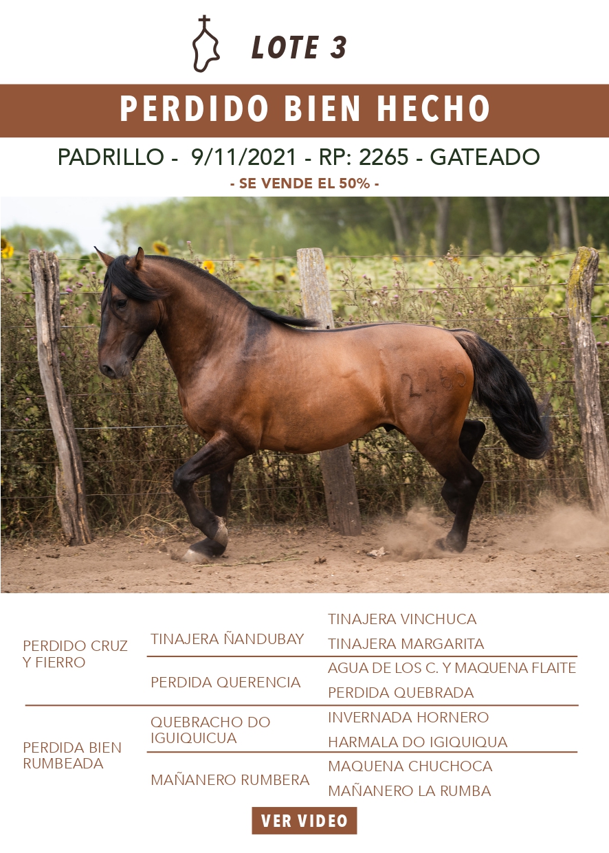 LOTE 3, PERDIDO BIEN HECHO 🔥 🔥 🔥 Lote Anterior Volver al remate Lote Siguiente Ficha Contacto Ofertar Buenos Aires - Ficha del Lote Identificador: #356169 Categoría: Padrillos Pedigree Buenos Aires - Ofertar SE VENDE EL 50% Fecha de cierre: 20 de Febrero a las 19:00hs. Aún no tiene ofertas Plazo: Contado 30 días 45 días 60 días 90 días 120 días 180 días Contado, 30 y 60 dias Su Oferta en $: − + Step: -20.000,00 / +20.000,00 Programar puja hasta: Programar puja hasta Aumentar puja programada 840000 1200000 **Oferta al bulto Iniciar sesión para ofertar Ofertar Compra por $ 99.000.000,00 Ofertas Recibidas $ Fecha/Hora Estado Este lote aún no tiene preofertas. ¿Estás seguro de comprar el LOTE PERDIDO BIEN HECHO por $ 99000000 ? 357 Visualizaciones ClicData Contacto Empresa: El Rincón Criollos Nombre*: Teléfono* : E-mail* : Mensaje Enviar Registrese gratis Este contenido Exclusivo está disponible sólo para usuarios registrados Ingresar