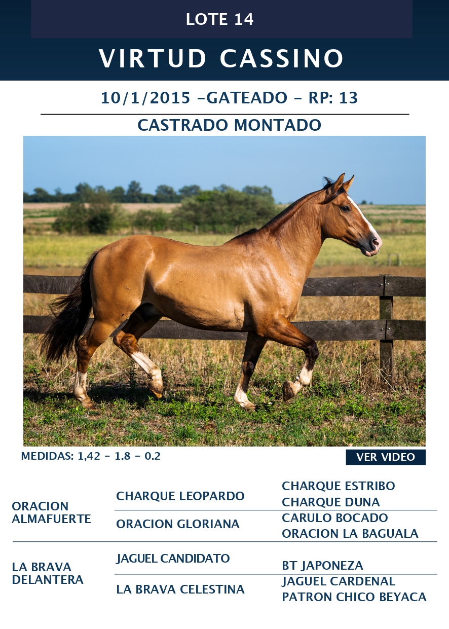 LOTE 14, VIRTUD CASSINO 🔥 🔥 🔥 Lote Anterior Volver al remate Lote Siguiente Ficha Contacto Ofertar Buenos Aires - Ficha del Lote Identificador: #359336 Categoría: Macho castrado RP: 13 Pedigree Buenos Aires - Ofertar Fecha de cierre: 09 de Marzo a las 15:00hs. Aún no tiene ofertas Plazo: Contado 30 días 45 días 60 días 90 días 120 días 180 días Contado, 30 y 60 dias Su Oferta en $: − + Step: -20.000,00 / +20.000,00 Programar puja hasta: Programar puja hasta Aumentar puja programada 340000 700000 **Oferta al bulto Iniciar sesión para ofertar Ofertar Compra por $ 99.000.000,00 Ofertas Recibidas $ Fecha/Hora Estado Este lote aún no tiene preofertas. ¿Estás seguro de comprar el LOTE VIRTUD CASSINO por $ 99000000 ? 247 Visualizaciones ClicData Contacto Empresa: El Rincón Criollos Nombre*: Teléfono* : E-mail* : Mensaje Enviar Registrese gratis Este contenido Exclusivo está disponible sólo para usuarios registrados Ingresar
