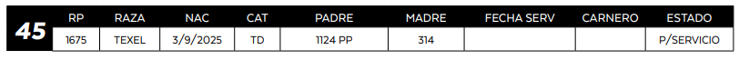 | Raza | TEXEL |