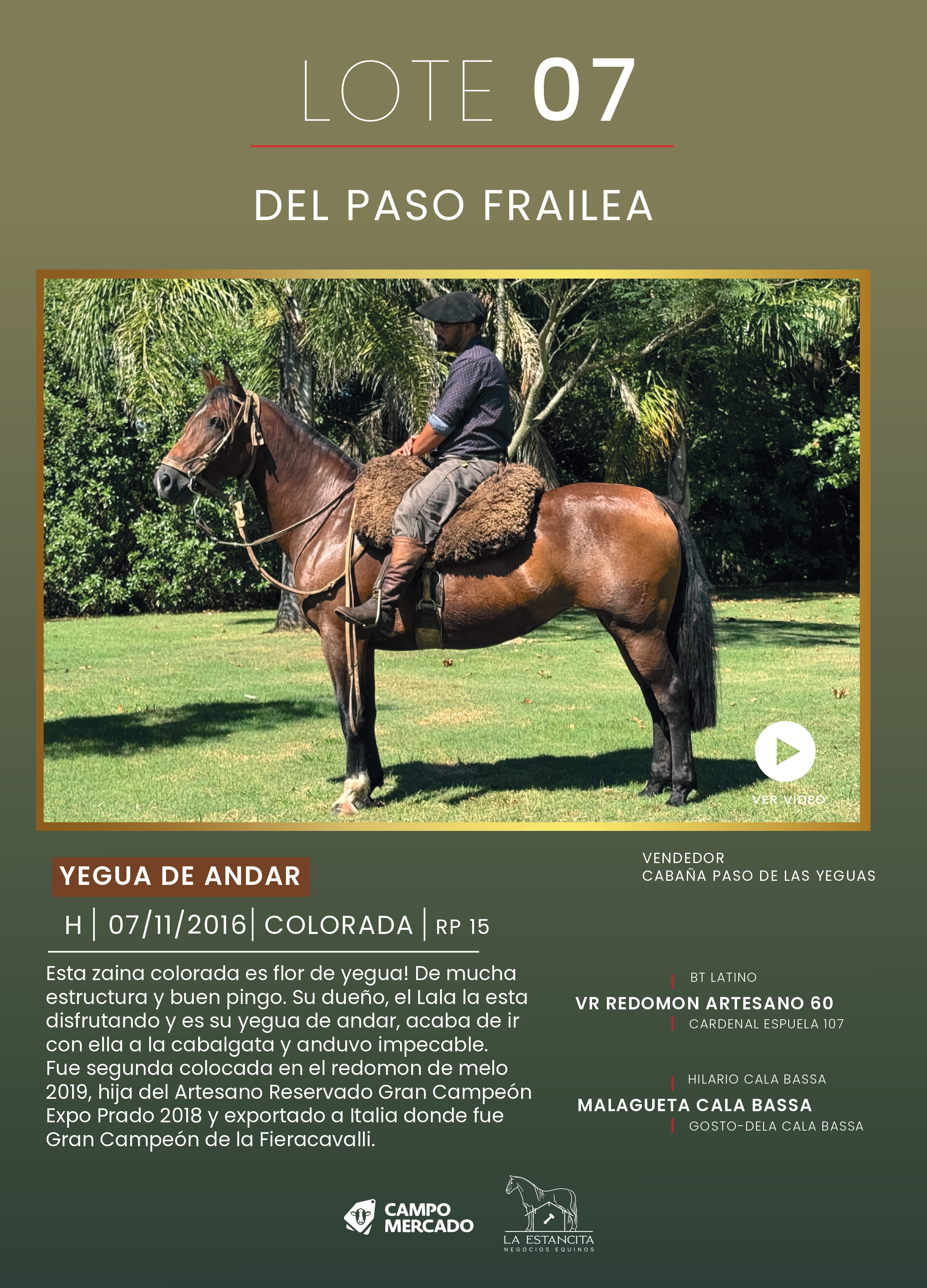 LOTE 7, DEL PASO FRAILEA 🔥 🔥 🔥 Lote Anterior Volver al remate Lote Siguiente Ficha Contacto Montevideo - Ficha del Lote Identificador: #359908 Categoría: Yegua de andar Pedigree Montevideo - 37 Visualizaciones ClicData Contacto Empresa: La Estancita Negocios Equinos Nombre*: Teléfono* : E-mail* : Mensaje Enviar Registrese gratis Este contenido Exclusivo está disponible sólo para usuarios registrados Ingresar