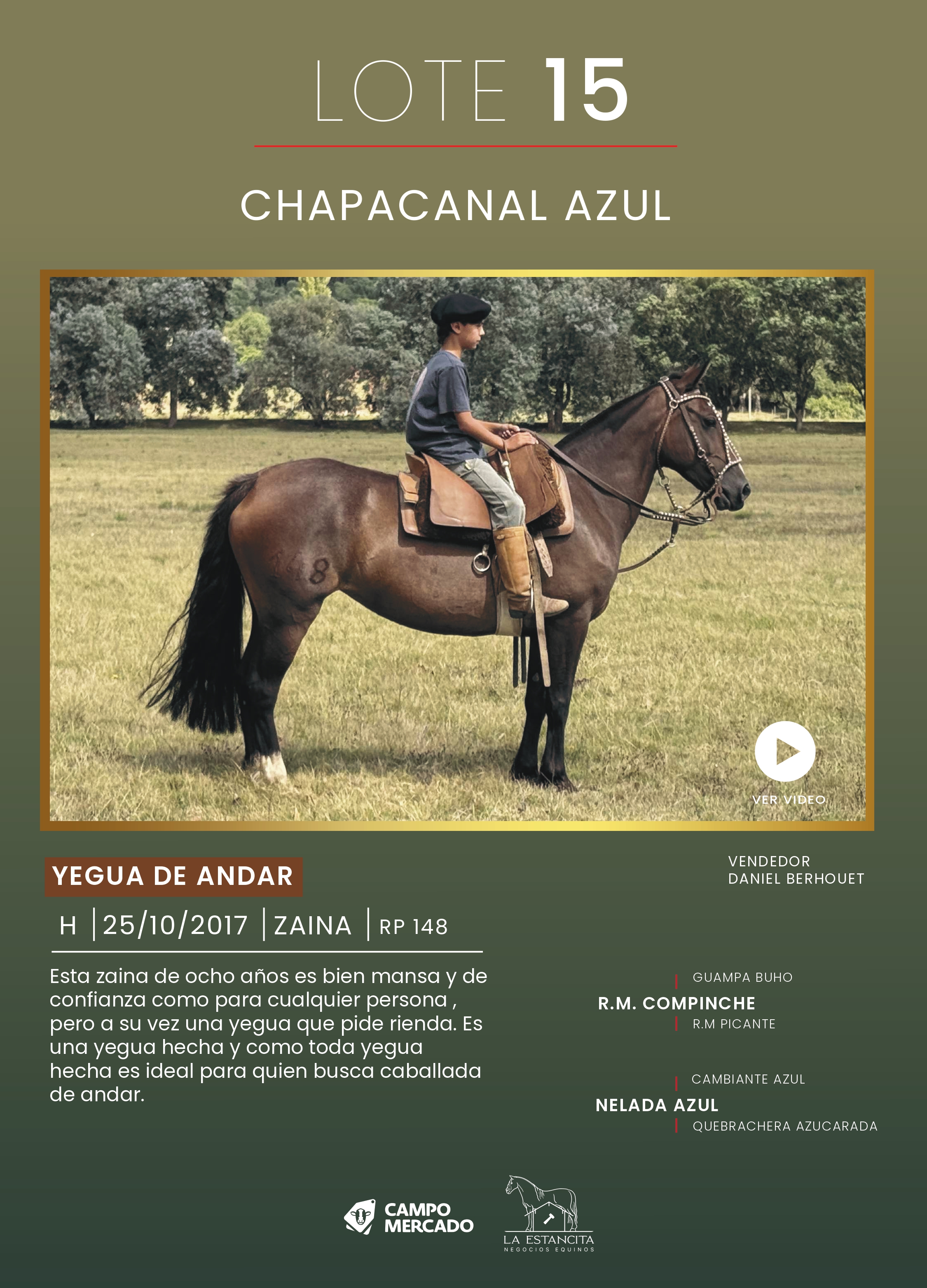 LOTE 15, CHAPACANAL AZUL Lote Anterior Volver al remate Lote Siguiente Ficha Contacto Montevideo - Ficha del Lote Identificador: #359916 Categoría: Yegua de andar Pedigree Montevideo - 24 Visualizaciones ClicData Contacto Empresa: La Estancita Negocios Equinos Nombre*: Teléfono* : E-mail* : Mensaje Enviar Registrese gratis Este contenido Exclusivo está disponible sólo para usuarios registrados Ingresar