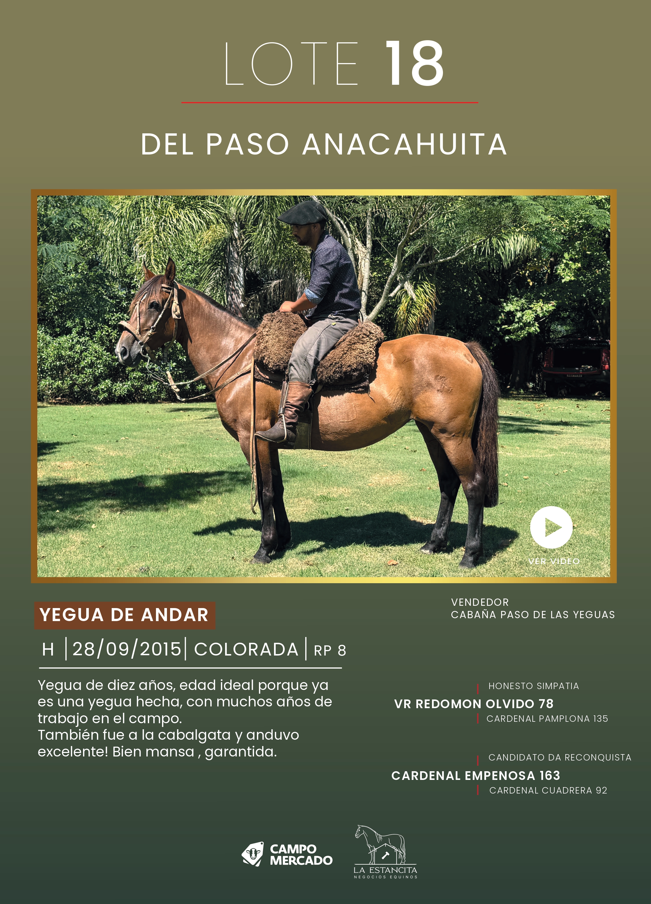 LOTE 18, DEL PASO ANACAHUITA Lote Anterior Volver al remate Lote Siguiente Ficha Contacto Montevideo - Ficha del Lote Identificador: #359919 Categoría: Yegua de andar Pedigree Montevideo - 19 Visualizaciones ClicData Contacto Empresa: La Estancita Negocios Equinos Nombre*: Teléfono* : E-mail* : Mensaje Enviar Registrese gratis Este contenido Exclusivo está disponible sólo para usuarios registrados Ingresar