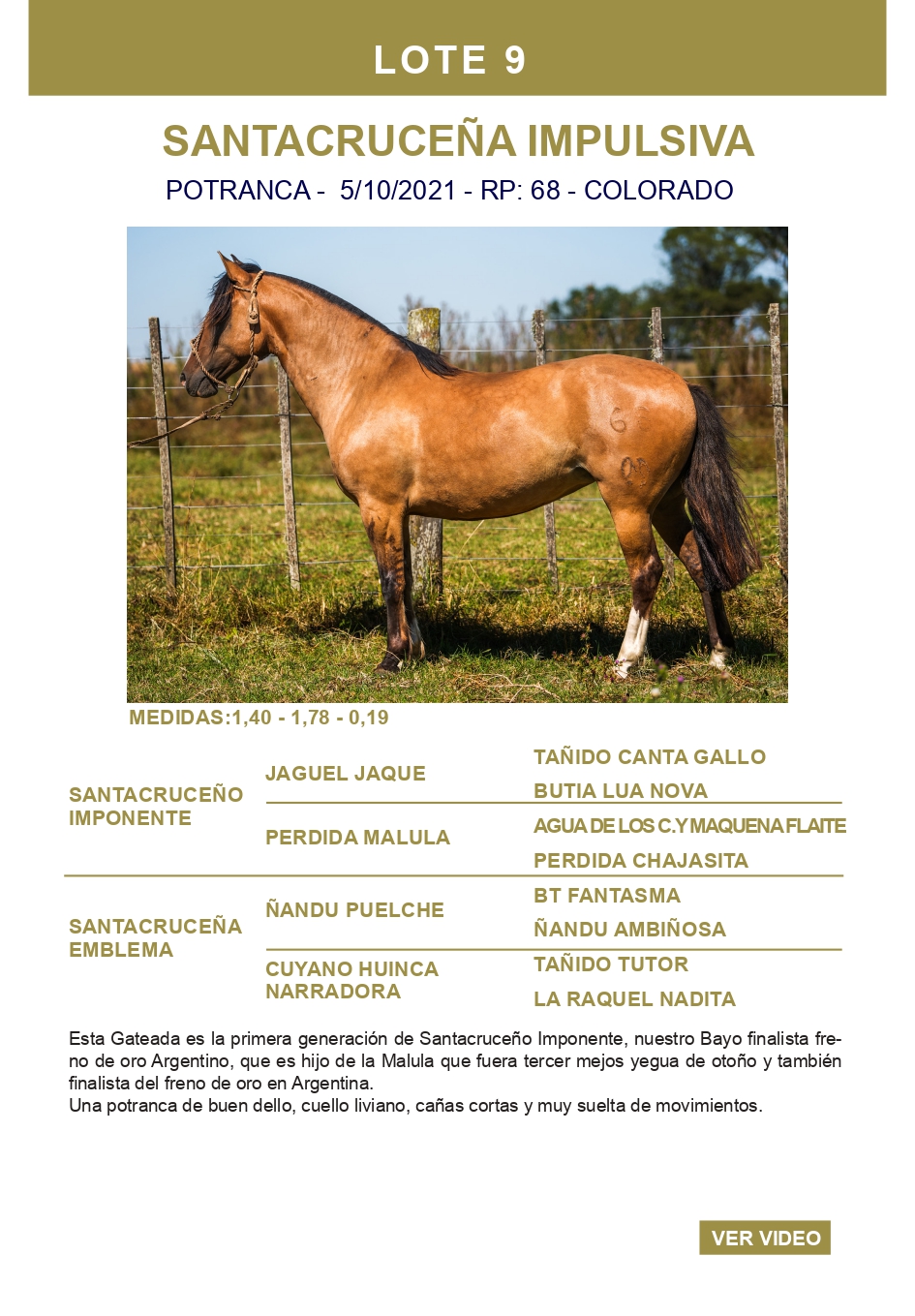 LOTE 9, SANTACRUCEÑA IMPULSIVA Lote Anterior Volver al remate Lote Siguiente Ficha Contacto Ofertar Buenos Aires - Ficha del Lote Identificador: #359971 Categoría: Potrancas Pedigree Buenos Aires - Ofertar Fecha de cierre: 17 de Marzo a las 15:00hs. Aún no tiene ofertas Plazo: Contado 30 días 45 días 60 días 90 días 120 días 180 días Contado, 30 y 60 dias Su Oferta en $: − + Step: -25.000,00 / +25.000,00 Programar puja hasta: Programar puja hasta Aumentar puja programada 450000 900000 **Oferta al bulto Iniciar sesión para ofertar Ofertar Compra por $ 99.000.000,00 Ofertas Recibidas $ Fecha/Hora Estado Este lote aún no tiene preofertas. ¿Estás seguro de comprar el LOTE SANTACRUCEÑA IMPULSIVA por $ 99000000 ? 135 Visualizaciones ClicData Contacto Empresa: El Rincón Criollos Nombre*: Teléfono* : E-mail* : Mensaje Enviar Registrese gratis Este contenido Exclusivo está disponible sólo para usuarios registrados Ingresar