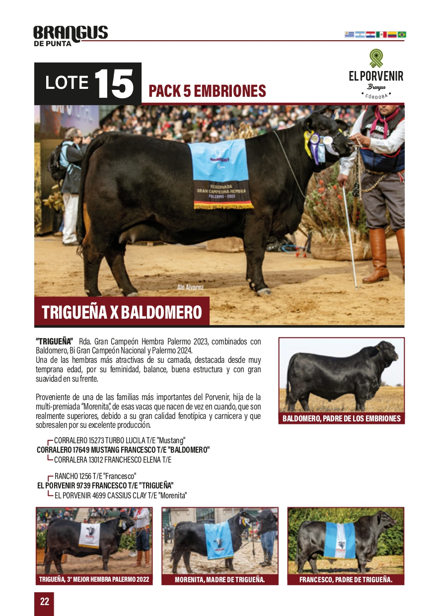 LOTE 15, PACK 5 EMBRIONES TRIGUEÑA X BALDOMERO
