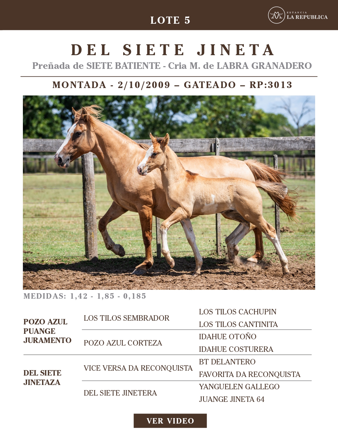 LOTE 5, DEL SIETE JINETA 🔥 🔥 🔥 Lote Anterior Volver al remate Lote Siguiente Ficha Contacto Ofertar Buenos Aires - Ficha del Lote Identificador: #363782 Categoría: Yeguas Montadas RP: 3013 Pedigree Plazo 18 cuotas Buenos Aires - Ofertar Fecha de cierre: 31 de Marzo a las 15:00hs. Prórroga: 2 minutos Aún no tiene ofertas Plazo: Contado 30 días 45 días 60 días 90 días 120 días 180 días Contado, 30 y 60 dias Su Oferta en $: (por 18 cuotas) − + Step: -50.000,00 / +50.000,00 Programar puja hasta: Programar puja hasta Aumentar puja programada 700000 1600000 Iniciar sesión para ofertar Ofertar Compra por $ 99.000.000,00 Ofertas Recibidas $ Fecha/Hora Estado Este lote aún no tiene preofertas. ¿Estás seguro de comprar el LOTE DEL SIETE JINETA por 18 cuotas de $ 99000000 ? 261 Visualizaciones ClicData Contacto Empresa: El Rincón Criollos Nombre*: Teléfono* : E-mail* : Mensaje Enviar Registrese gratis Este contenido Exclusivo está disponible sólo para usuarios registrados Ingresar