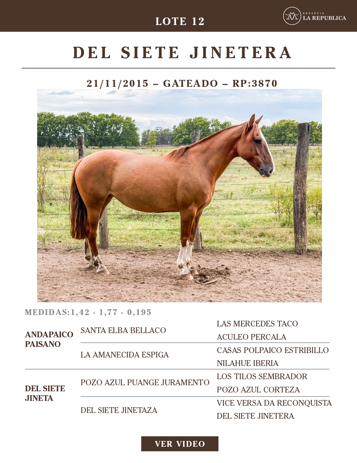 LOTE 12, DEL SIETE JINETERA Lote Anterior Volver al remate Lote Siguiente Ficha Contacto Ofertar Buenos Aires - Ficha del Lote Identificador: #363789 Categoría: Yeguas RP: 3870 Pedigree Plazo 18 cuotas Buenos Aires - Ofertar Fecha de cierre: 31 de Marzo a las 15:00hs. Prórroga: 2 minutos Aún no tiene ofertas Plazo: Contado 30 días 45 días 60 días 90 días 120 días 180 días Contado, 30 y 60 dias Su Oferta en $: (por 18 cuotas) − + Step: -50.000,00 / +50.000,00 Programar puja hasta: Programar puja hasta Aumentar puja programada 700000 1600000 Iniciar sesión para ofertar Ofertar Compra por $ 99.000.000,00 Ofertas Recibidas $ Fecha/Hora Estado Este lote aún no tiene preofertas. ¿Estás seguro de comprar el LOTE DEL SIETE JINETERA por 18 cuotas de $ 99000000 ? 169 Visualizaciones ClicData Contacto Empresa: El Rincón Criollos Nombre*: Teléfono* : E-mail* : Mensaje Enviar Registrese gratis Este contenido Exclusivo está disponible sólo para usuarios registrados Ingresar