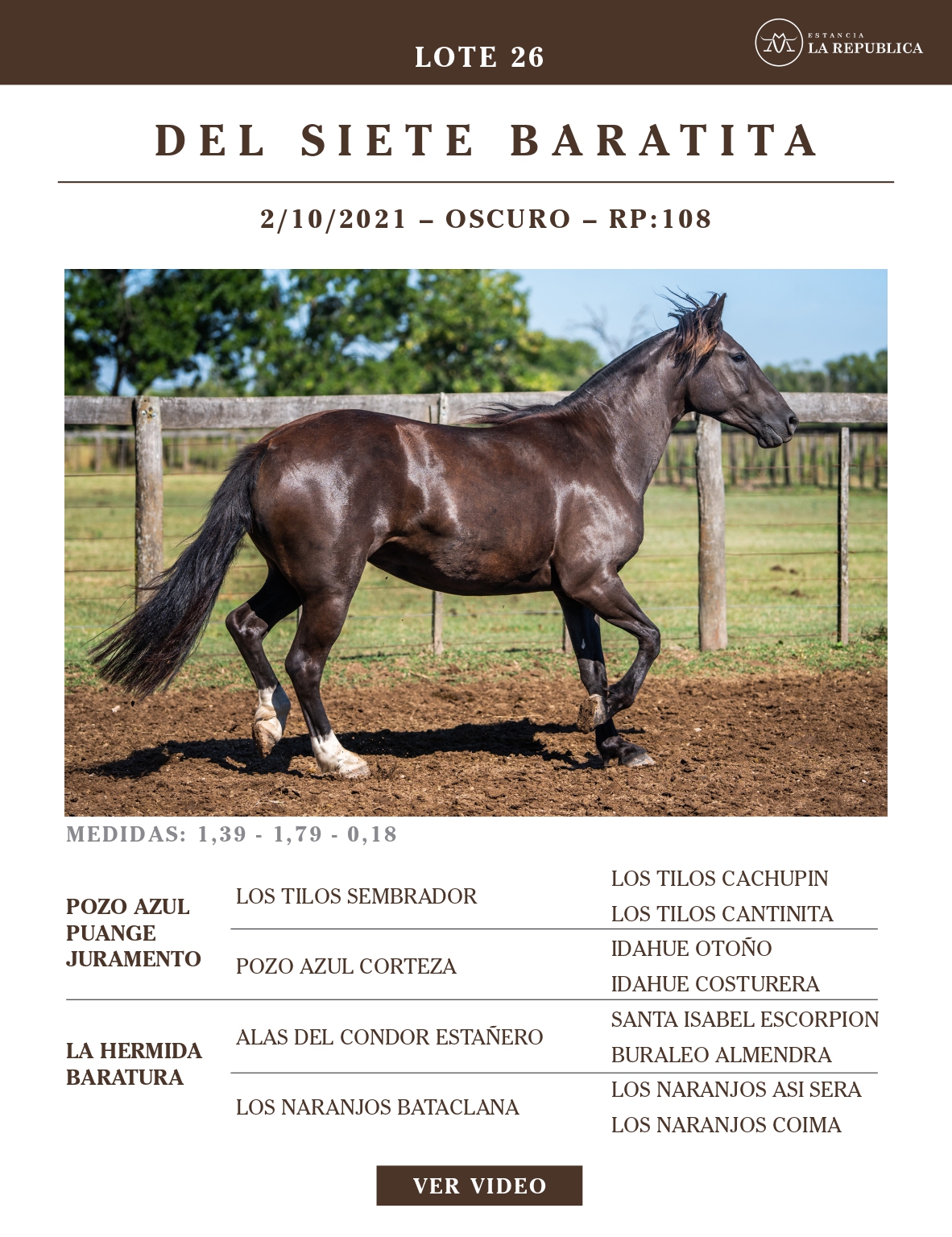LOTE 26, DEL SIETE BARATITA Lote Anterior Volver al remate Lote Siguiente Ficha Contacto Ofertar Buenos Aires - Ficha del Lote Identificador: #363803 Categoría: Yeguas RP: 108 Pedigree Plazo 18 cuotas Buenos Aires - Ofertar Fecha de cierre: 31 de Marzo a las 15:00hs. Prórroga: 2 minutos Aún no tiene ofertas Plazo: Contado 30 días 45 días 60 días 90 días 120 días 180 días Contado, 30 y 60 dias Su Oferta en $: (por 18 cuotas) − + Step: -50.000,00 / +50.000,00 Programar puja hasta: Programar puja hasta Aumentar puja programada 500000 1400000 Iniciar sesión para ofertar Ofertar Compra por $ 99.000.000,00 Ofertas Recibidas $ Fecha/Hora Estado Este lote aún no tiene preofertas. ¿Estás seguro de comprar el LOTE DEL SIETE BARATITA por 18 cuotas de $ 99000000 ? 137 Visualizaciones ClicData Contacto Empresa: El Rincón Criollos Nombre*: Teléfono* : E-mail* : Mensaje Enviar Registrese gratis Este contenido Exclusivo está disponible sólo para usuarios registrados Ingresar