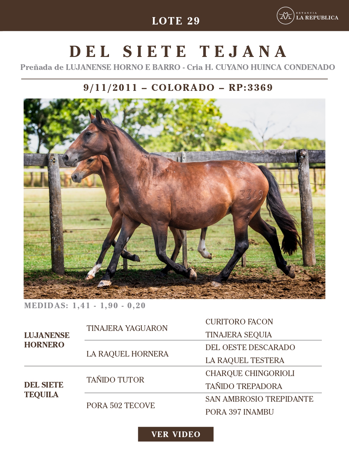 LOTE 29, DEL SIETE TEJANA Lote Anterior Volver al remate Lote Siguiente Ficha Contacto Ofertar Buenos Aires - Ficha del Lote Identificador: #363806 Categoría: Yeguas RP: 3369 Pedigree Plazo 18 cuotas Buenos Aires - Ofertar Fecha de cierre: 31 de Marzo a las 15:00hs. Prórroga: 2 minutos Aún no tiene ofertas Plazo: Contado 30 días 45 días 60 días 90 días 120 días 180 días Contado, 30 y 60 dias Su Oferta en $: (por 18 cuotas) − + Step: -50.000,00 / +50.000,00 Programar puja hasta: Programar puja hasta Aumentar puja programada 500000 1400000 Iniciar sesión para ofertar Ofertar Compra por $ 99.000.000,00 Ofertas Recibidas $ Fecha/Hora Estado Este lote aún no tiene preofertas. ¿Estás seguro de comprar el LOTE DEL SIETE TEJANA por 18 cuotas de $ 99000000 ? 184 Visualizaciones ClicData Contacto Empresa: El Rincón Criollos Nombre*: Teléfono* : E-mail* : Mensaje Enviar Registrese gratis Este contenido Exclusivo está disponible sólo para usuarios registrados Ingresar