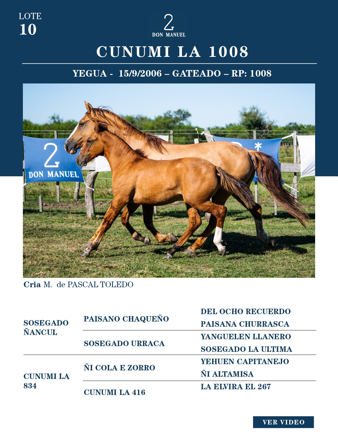 LOTE 10, CUNUMI LA 1008 Lote Anterior Volver al remate Lote Siguiente Ficha Contacto Ofertar Buenos Aires - Ficha del Lote Identificador: #365306 Categoría: Yeguas RP: 1008 Pedigree Buenos Aires - Ofertar CON CRIA AL PIE DE CAÑUMIL PASCUAL TOLEDO Fecha de cierre: 11 de Abril a las 15:00hs. Aún no tiene ofertas Plazo: Contado 30 días 45 días 60 días 90 días 120 días 180 días Contado, 30 y 60 dias Su Oferta en $: − + Step: -50.000,00 / +50.000,00 Programar puja hasta: Programar puja hasta Aumentar puja programada 400000 1300000 **Oferta al bulto Iniciar sesión para ofertar Ofertar Compra por $ 99.000.000,00 Ofertas Recibidas $ Fecha/Hora Estado Este lote aún no tiene preofertas. ¿Estás seguro de comprar el LOTE CUNUMI LA 1008 por $ 99000000 ? 185 Visualizaciones ClicData Contacto Empresa: El Rincón Criollos Nombre*: Teléfono* : E-mail* : Mensaje Enviar Registrese gratis Este contenido Exclusivo está disponible sólo para usuarios registrados Ingresar