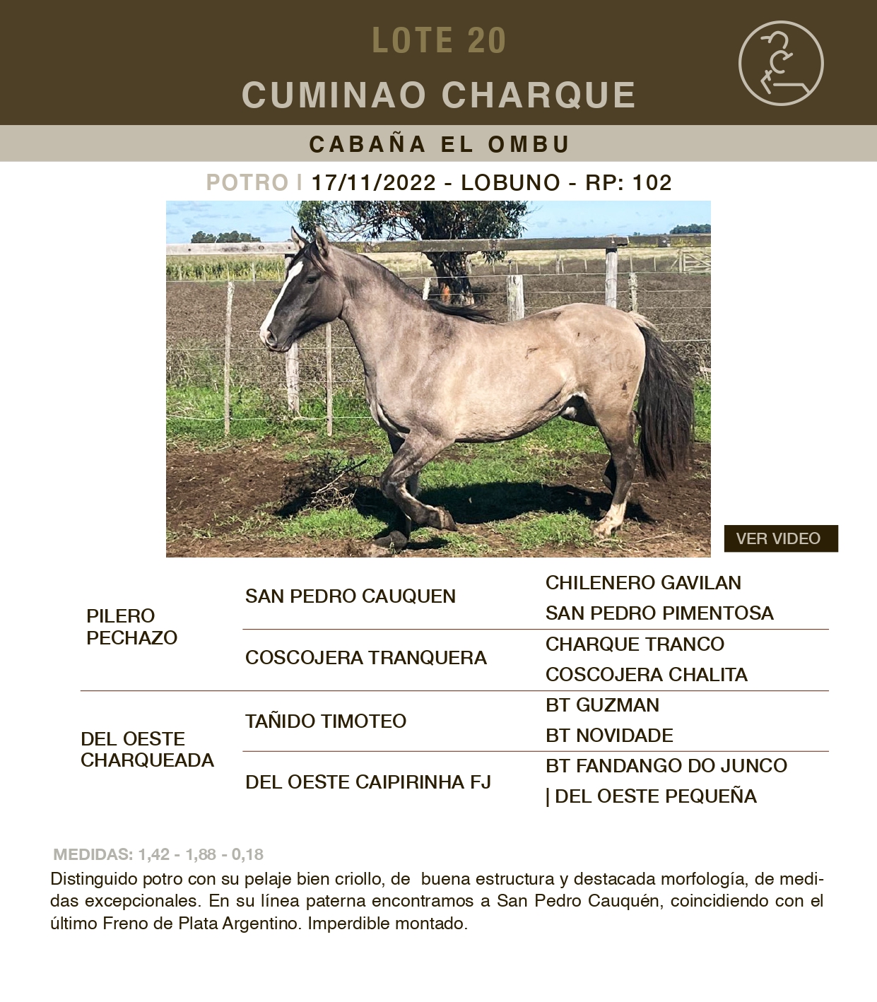 LOTE 20, Cuminao Charque Lote Anterior Volver al remate Lote Siguiente Ficha Contacto Ofertar Buenos Aires - Ficha del Lote Identificador: #365793 Categoría: Potros RP: 102 Pedigree Plazo 15 cuotas Buenos Aires - Ofertar Fecha de cierre: 14 de Abril a las 15:00hs. Aún no tiene ofertas Plazo: Contado 30 días 45 días 60 días 90 días 120 días 180 días Contado, 30 y 60 dias Su Oferta en $: (por 15 cuotas) − + Step: -20.000,00 / +20.000,00 Programar puja hasta: Programar puja hasta Aumentar puja programada 220000 580000 Iniciar sesión para ofertar Ofertar Compra por $ 99.000.000,00 Ofertas Recibidas $ Fecha/Hora Estado Este lote aún no tiene preofertas. ¿Estás seguro de comprar el LOTE Cuminao Charque por 15 cuotas de $ 99000000 ? 162 Visualizaciones ClicData Contacto Empresa: El Rincón Criollos Nombre*: Teléfono* : E-mail* : Mensaje Enviar Registrese gratis Este contenido Exclusivo está disponible sólo para usuarios registrados Ingresar