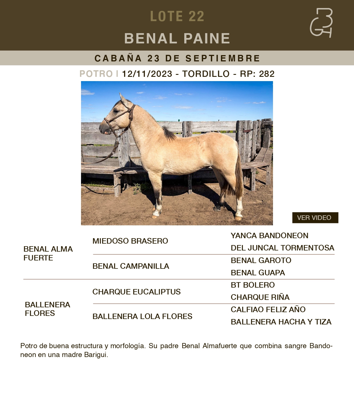 LOTE 22, Benal Paine Lote Anterior Volver al remate Lote Siguiente Ficha Contacto Ofertar Buenos Aires - Ficha del Lote Identificador: #365795 Categoría: Potros RP: 282 Pedigree Plazo 15 cuotas Buenos Aires - Ofertar Fecha de cierre: 14 de Abril a las 15:00hs. Aún no tiene ofertas Plazo: Contado 30 días 45 días 60 días 90 días 120 días 180 días Contado, 30 y 60 dias Su Oferta en $: (por 15 cuotas) − + Step: -20.000,00 / +20.000,00 Programar puja hasta: Programar puja hasta Aumentar puja programada 220000 580000 Iniciar sesión para ofertar Ofertar Compra por $ 99.000.000,00 Ofertas Recibidas $ Fecha/Hora Estado Este lote aún no tiene preofertas. ¿Estás seguro de comprar el LOTE Benal Paine por 15 cuotas de $ 99000000 ? 103 Visualizaciones ClicData Contacto Empresa: El Rincón Criollos Nombre*: Teléfono* : E-mail* : Mensaje Enviar Registrese gratis Este contenido Exclusivo está disponible sólo para usuarios registrados Ingresar