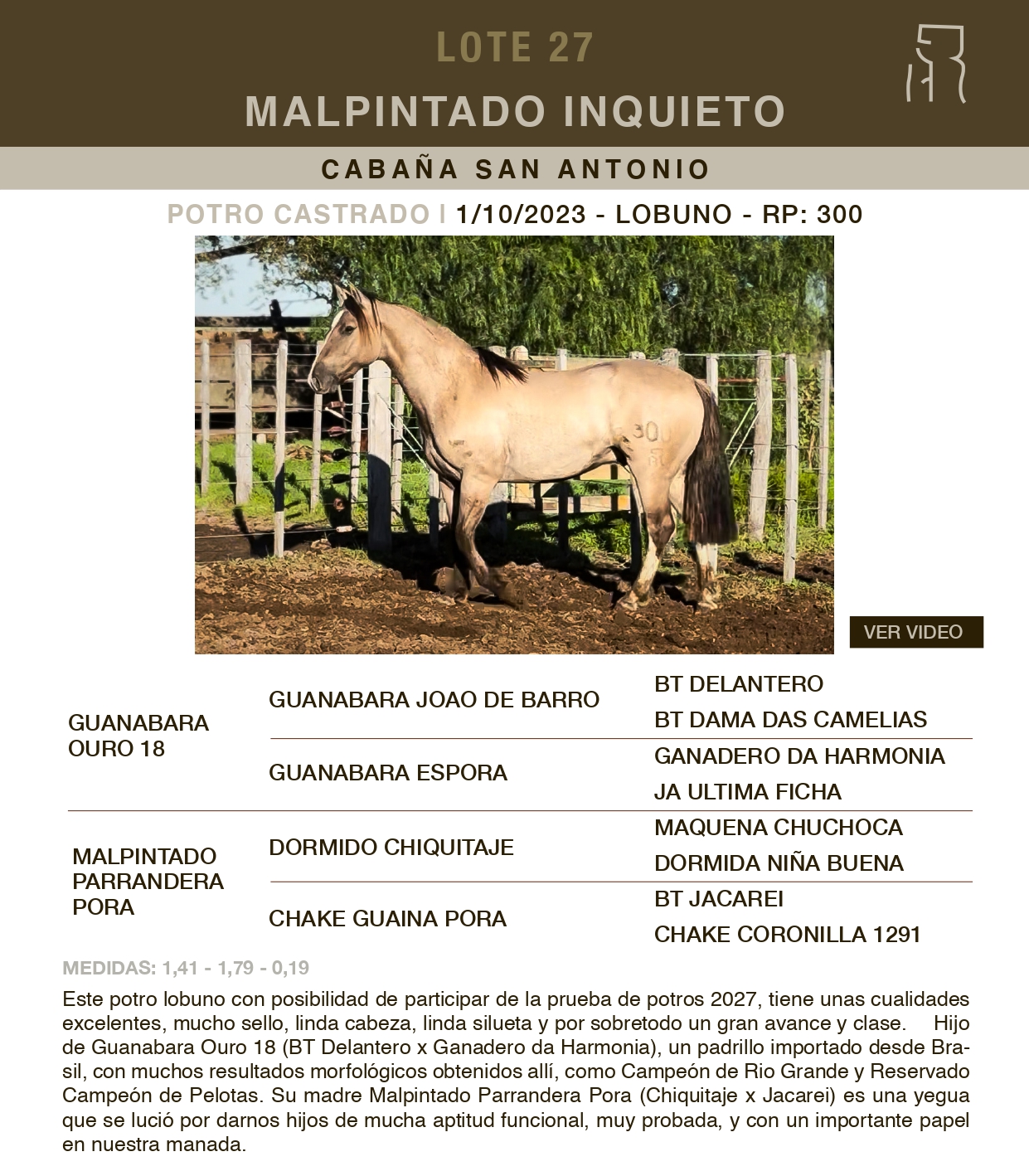 LOTE 27, Malpintado Inquieto 🔥 🔥 🔥 Lote Anterior Volver al remate Lote Siguiente Ficha Contacto Ofertar Buenos Aires - Ficha del Lote Identificador: #365800 Categoría: Potros RP: 300 Pedigree Plazo 15 cuotas Buenos Aires - Ofertar Fecha de cierre: 14 de Abril a las 15:00hs. Aún no tiene ofertas Plazo: Contado 30 días 45 días 60 días 90 días 120 días 180 días Contado, 30 y 60 dias Su Oferta en $: (por 15 cuotas) − + Step: -20.000,00 / +20.000,00 Programar puja hasta: Programar puja hasta Aumentar puja programada 220000 580000 Iniciar sesión para ofertar Ofertar Compra por $ 99.000.000,00 Ofertas Recibidas $ Fecha/Hora Estado Este lote aún no tiene preofertas. ¿Estás seguro de comprar el LOTE Malpintado Inquieto por 15 cuotas de $ 99000000 ? 209 Visualizaciones ClicData Contacto Empresa: El Rincón Criollos Nombre*: Teléfono* : E-mail* : Mensaje Enviar Registrese gratis Este contenido Exclusivo está disponible sólo para usuarios registrados Ingresar
