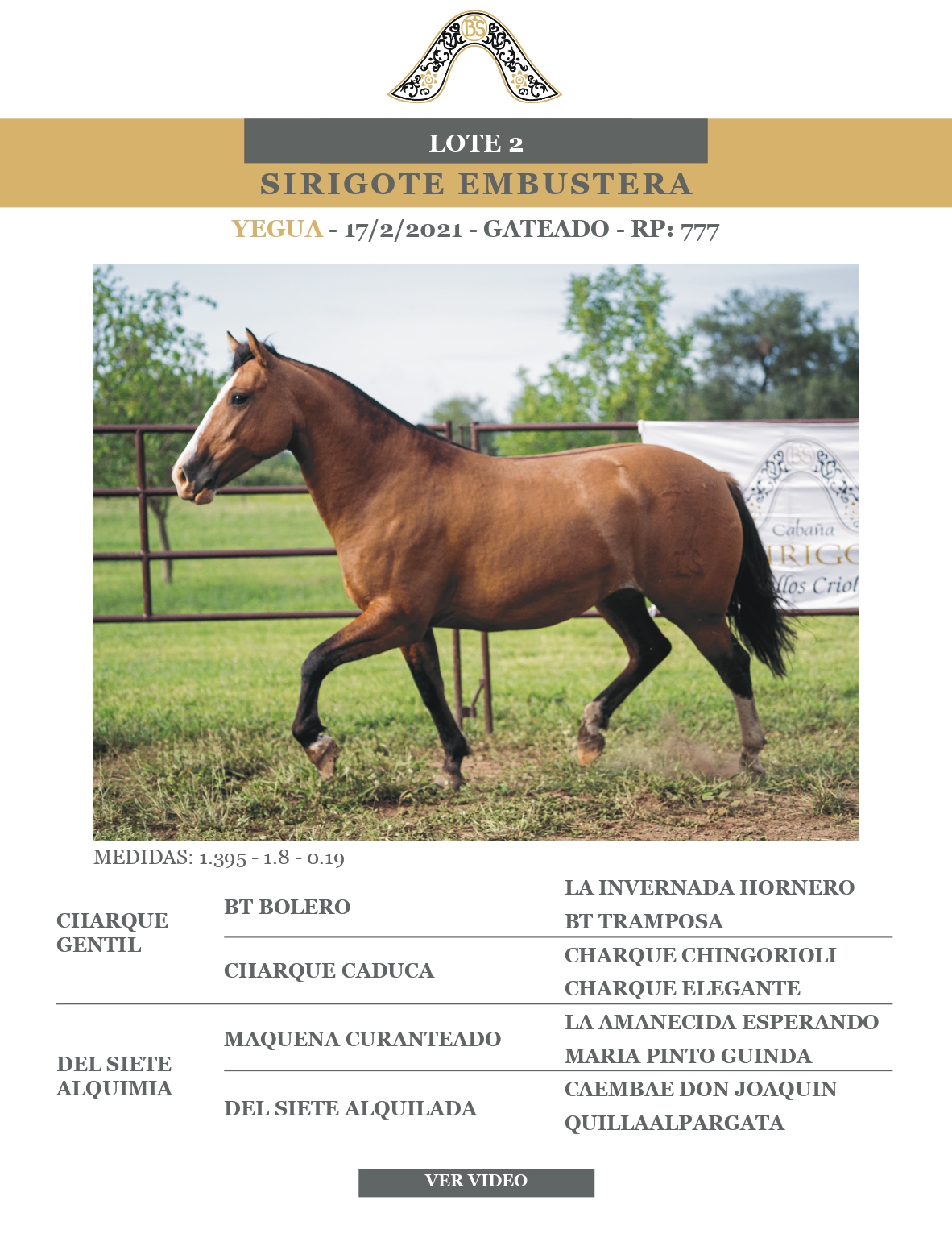 LOTE 2, SIRIGOTE EMBUSTERA 🔥 🔥 🔥 Lote Anterior Volver al remate Lote Siguiente Ficha Contacto Ofertar Buenos Aires - Ficha del Lote Identificador: #365967 Categoría: Yeguas RP: 777 Pedigree Buenos Aires - Ofertar Fecha de cierre: 18 de Abril a las 12:00hs. Aún no tiene ofertas Plazo: Contado 30 días 45 días 60 días 90 días 120 días 180 días Contado, 30 y 60 dias Su Oferta en $: − + Step: -50.000,00 / +50.000,00 Programar puja hasta: Programar puja hasta Aumentar puja programada 650000 1550000 **Oferta al bulto Iniciar sesión para ofertar Ofertar Compra por $ 99.000.000,00 Ofertas Recibidas $ Fecha/Hora Estado Este lote aún no tiene preofertas. ¿Estás seguro de comprar el LOTE SIRIGOTE EMBUSTERA por $ 99000000 ? 145 Visualizaciones ClicData Contacto Empresa: El Rincón Criollos Nombre*: Teléfono* : E-mail* : Mensaje Enviar Registrese gratis Este contenido Exclusivo está disponible sólo para usuarios registrados Ingresar