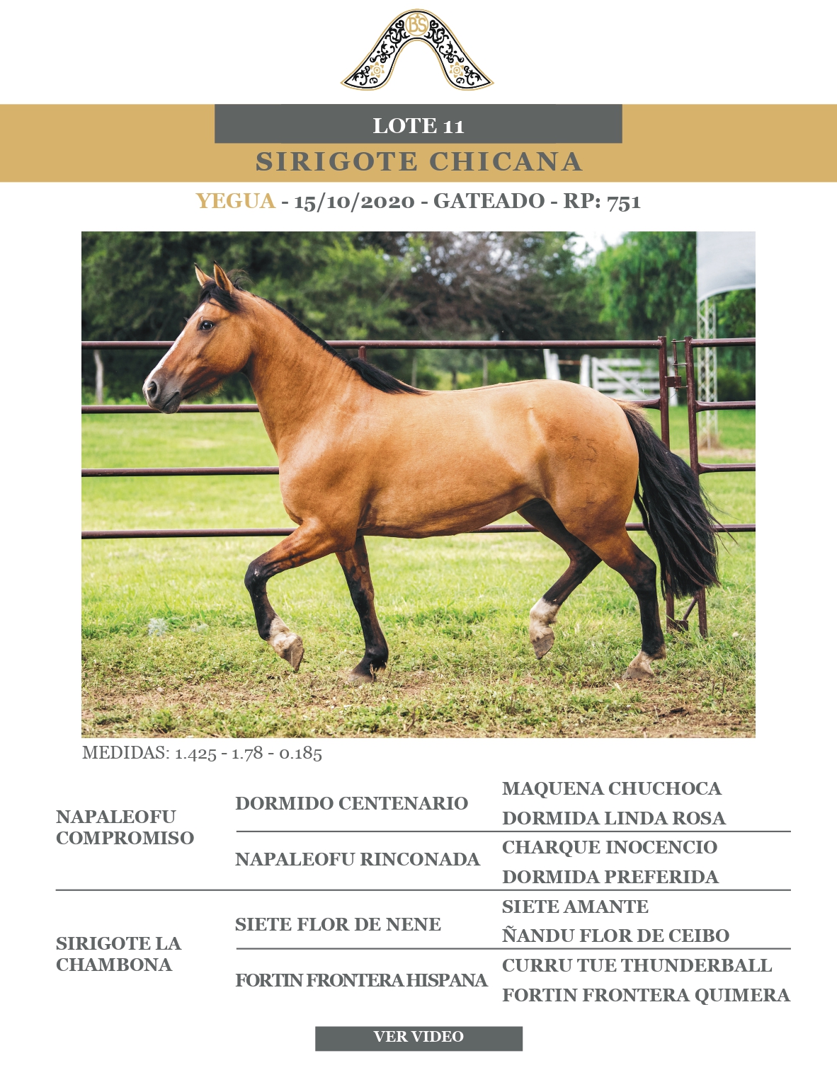 LOTE 11, SIRIGOTE CHICANA Lote Anterior Volver al remate Lote Siguiente Ficha Contacto Ofertar Buenos Aires - Ficha del Lote Identificador: #365976 Categoría: Yeguas RP: 751 Pedigree Buenos Aires - Ofertar Fecha de cierre: 18 de Abril a las 12:00hs. Aún no tiene ofertas Plazo: Contado 30 días 45 días 60 días 90 días 120 días 180 días Contado, 30 y 60 dias Su Oferta en $: − + Step: -50.000,00 / +50.000,00 Programar puja hasta: Programar puja hasta Aumentar puja programada 600000 1500000 **Oferta al bulto Iniciar sesión para ofertar Ofertar Compra por $ 99.000.000,00 Ofertas Recibidas $ Fecha/Hora Estado Este lote aún no tiene preofertas. ¿Estás seguro de comprar el LOTE SIRIGOTE CHICANA por $ 99000000 ? 65 Visualizaciones ClicData Contacto Empresa: El Rincón Criollos Nombre*: Teléfono* : E-mail* : Mensaje Enviar Registrese gratis Este contenido Exclusivo está disponible sólo para usuarios registrados Ingresar