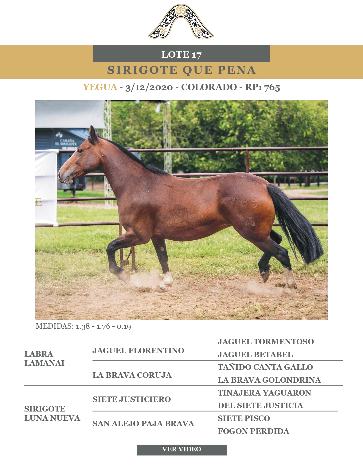 LOTE 17, SIRIGOTE QUE PENA Lote Anterior Volver al remate Lote Siguiente Ficha Contacto Ofertar Buenos Aires - Ficha del Lote Identificador: #365982 Categoría: Yeguas RP: 765 Pedigree Buenos Aires - Ofertar Fecha de cierre: 18 de Abril a las 12:00hs. Aún no tiene ofertas Plazo: Contado 30 días 45 días 60 días 90 días 120 días 180 días Contado, 30 y 60 dias Su Oferta en $: − + Step: -50.000,00 / +50.000,00 Programar puja hasta: Programar puja hasta Aumentar puja programada 650000 1550000 **Oferta al bulto Iniciar sesión para ofertar Ofertar Compra por $ 99.000.000,00 Ofertas Recibidas $ Fecha/Hora Estado Este lote aún no tiene preofertas. ¿Estás seguro de comprar el LOTE SIRIGOTE QUE PENA por $ 99000000 ? 62 Visualizaciones ClicData Contacto Empresa: El Rincón Criollos Nombre*: Teléfono* : E-mail* : Mensaje Enviar Registrese gratis Este contenido Exclusivo está disponible sólo para usuarios registrados Ingresar