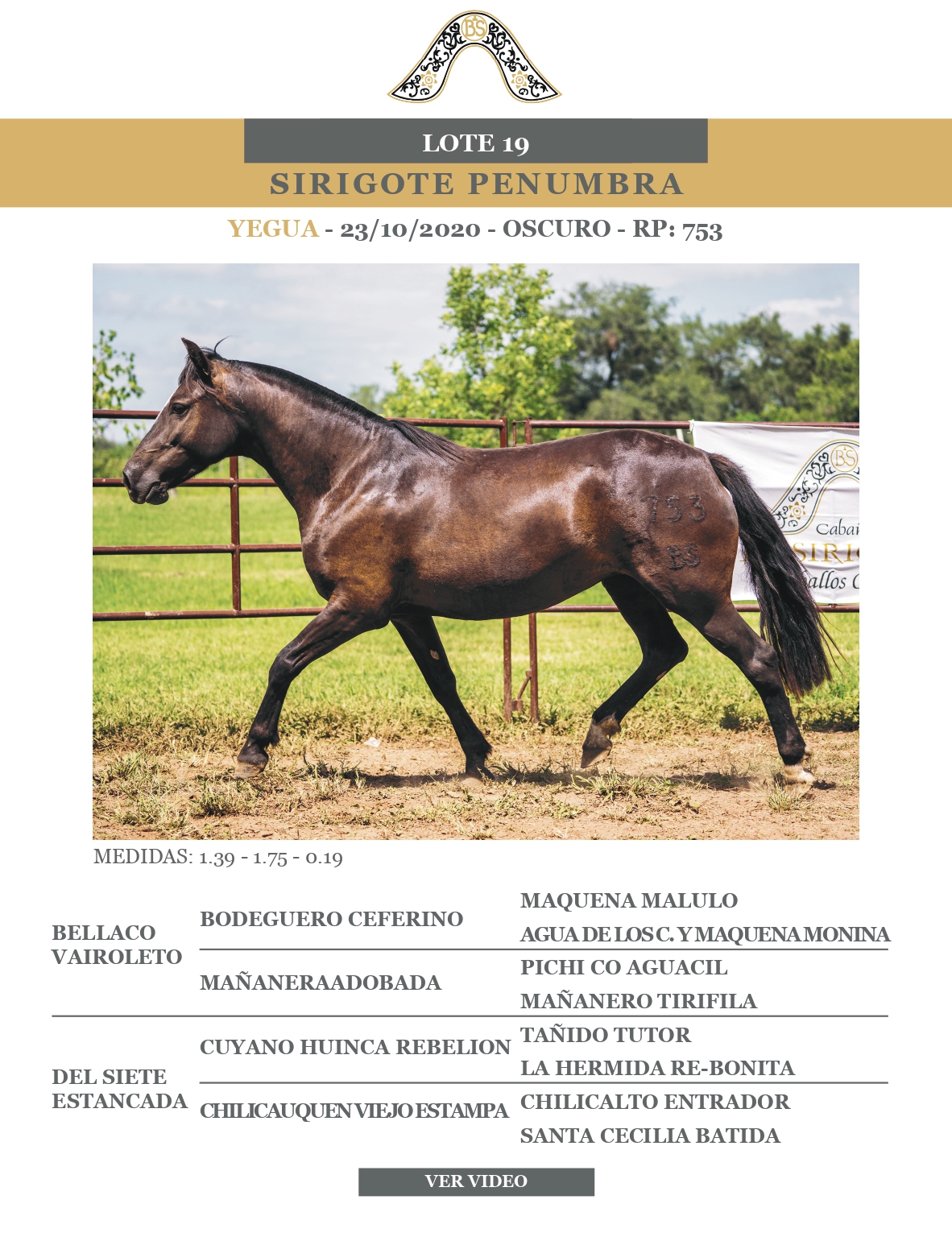 LOTE 19, SIRIGOTE PENUMBRA Lote Anterior Volver al remate Lote Siguiente Ficha Contacto Ofertar Buenos Aires - Ficha del Lote Identificador: #365984 Categoría: Yeguas RP: 753 Pedigree Buenos Aires - Ofertar Fecha de cierre: 18 de Abril a las 12:00hs. Aún no tiene ofertas Plazo: Contado 30 días 45 días 60 días 90 días 120 días 180 días Contado, 30 y 60 dias Su Oferta en $: − + Step: -50.000,00 / +50.000,00 Programar puja hasta: Programar puja hasta Aumentar puja programada 500000 1400000 **Oferta al bulto Iniciar sesión para ofertar Ofertar Compra por $ 99.000.000,00 Ofertas Recibidas $ Fecha/Hora Estado Este lote aún no tiene preofertas. ¿Estás seguro de comprar el LOTE SIRIGOTE PENUMBRA por $ 99000000 ? 65 Visualizaciones ClicData Contacto Empresa: El Rincón Criollos Nombre*: Teléfono* : E-mail* : Mensaje Enviar Registrese gratis Este contenido Exclusivo está disponible sólo para usuarios registrados Ingresar