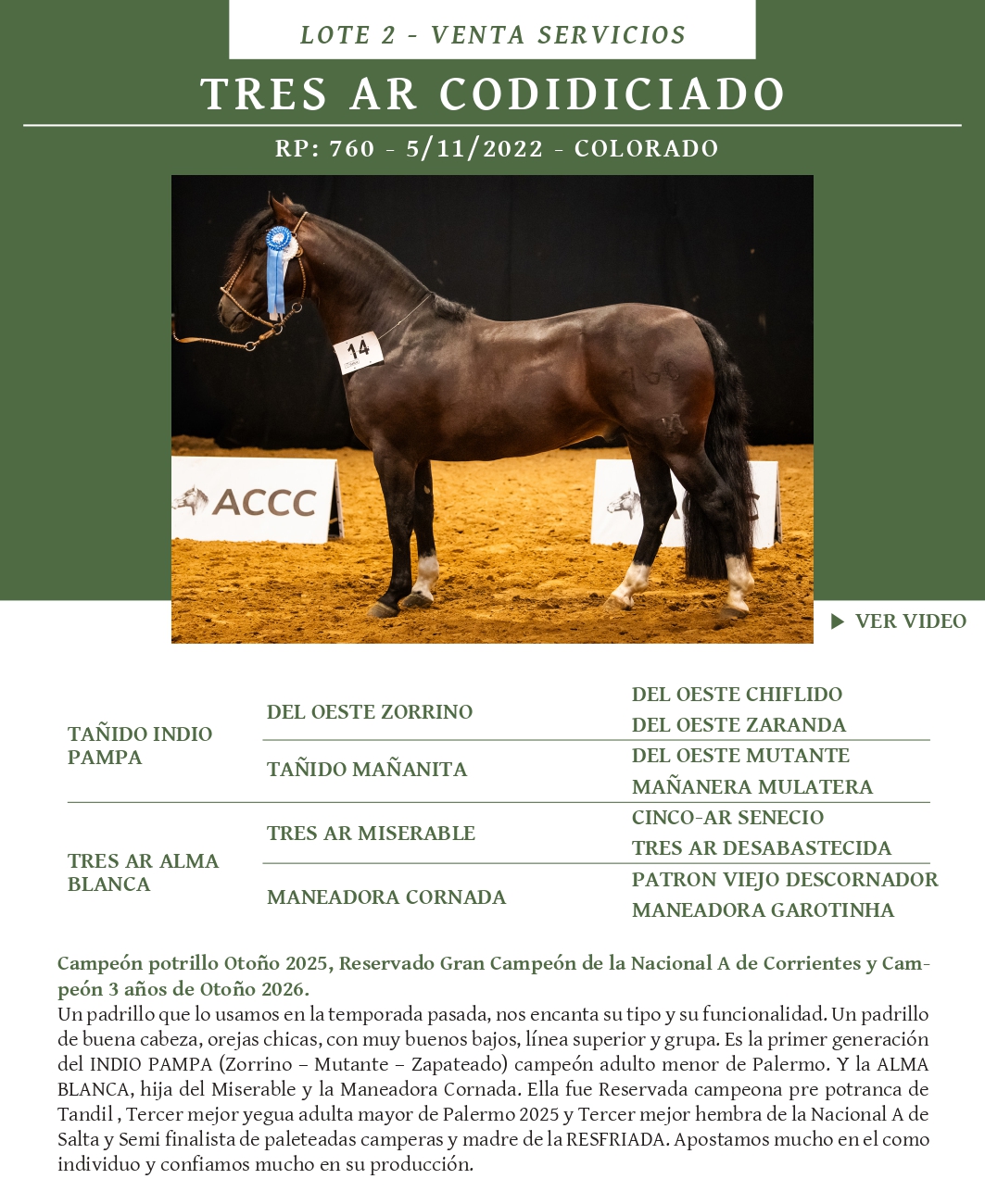 LOTE 2, TRES AR CODICIADO 🔥 🔥 🔥 Lote Anterior Volver al remate Lote Siguiente Ficha Contacto Buenos Aires - Ficha del Lote Identificador: #367453 Categoría: Servicios RP: 760 Pedigree Buenos Aires - 121 Visualizaciones ClicData Contacto Empresa: El Rincón Criollos Nombre*: Teléfono* : E-mail* : Mensaje Enviar Registrese gratis Este contenido Exclusivo está disponible sólo para usuarios registrados Ingresar