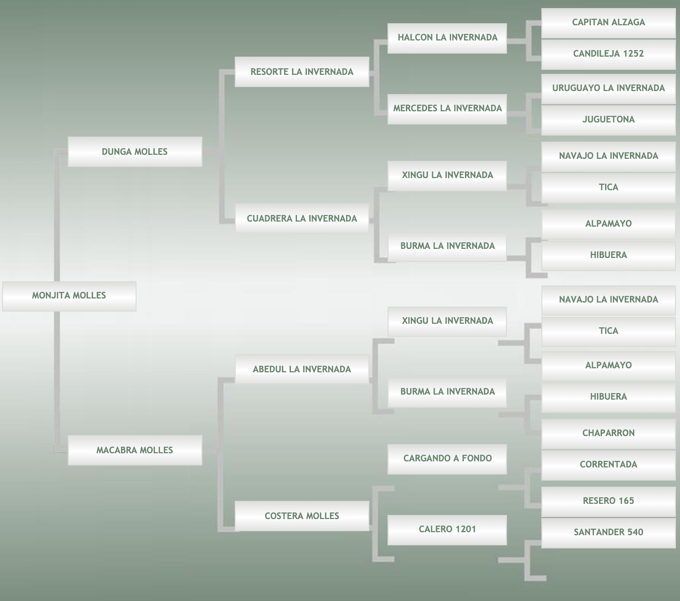 MACABRA MOLLES, obtuvo el cuarto puesto en la marcha en minas, viene por Abedul La Invernada xCostera Molles, hija del reconocido Cargando a Fondo, padre líder de la producción de “San Pedro de Timote” de Don Alberto Gallinal, que dejara una extraordinaria descendencia de resistencia.