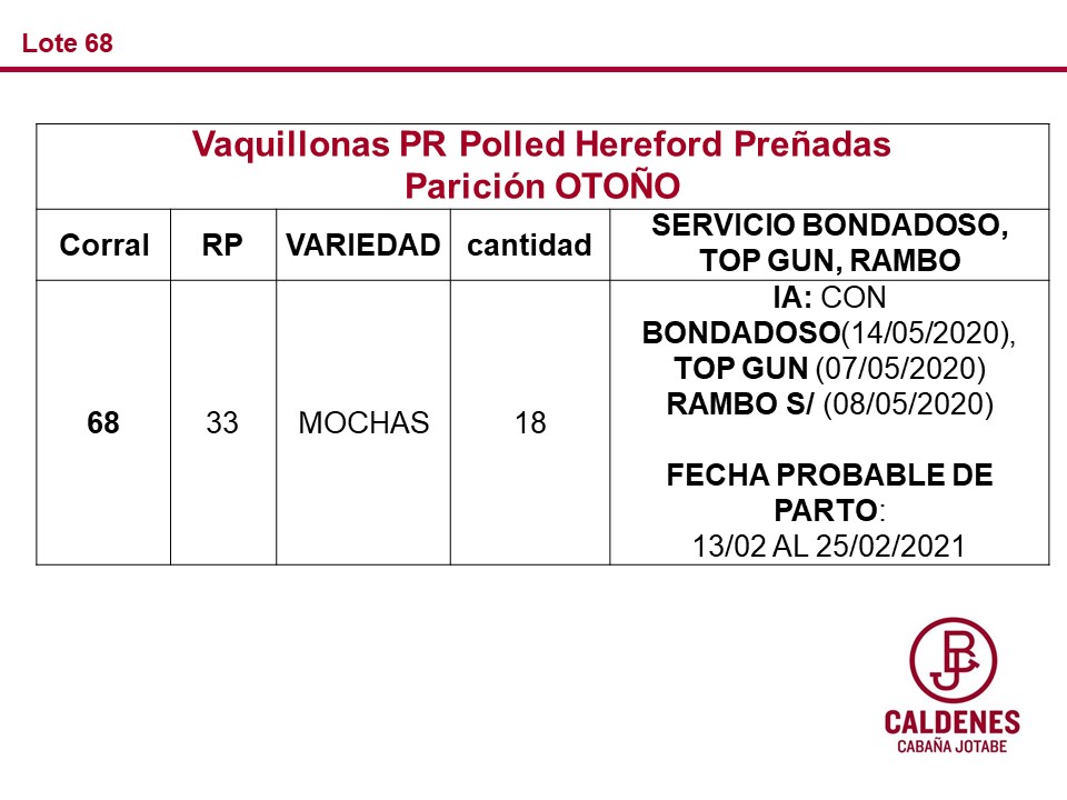 LOTE 68, VAQUILLONAS PR PREÑADAS (CORRAL 50) Lote Anterior Volver al remate Lote Siguiente Ficha Contacto Ofertar Buenos Aires - Ficha del Lote Identificador: #80186 Cantidad: 18 Categoría: Vaquillonas preñadas Pedigree Descripción: Vaquillonas PR Polled Hereford Preñadas Parición OTOÑO Plazo Consultar Raza Hereford Buenos Aires - Ofertar Aún no tiene ofertas Plazo: Contado 30 días 45 días 60 días 90 días 120 días 180 días Contado, 30 y 60 dias Su Oferta en $: − + Step: -3.000,00 / +3.000,00 Programar puja hasta: Programar puja hasta Aumentar puja programada 66000 120000 **Oferta al bulto Iniciar sesión para ofertar Ofertar Listado de preofertas $ Fecha/Hora Estado Este lote aún no tiene preofertas. 79 Visualizaciones ClicData Contacto Comercial a cargo: Paulo Empresa: Caldenes Agropecuaria Nombre*: Teléfono* : E-mail* : Mensaje Por informes y consultas 03382 15 418112 Enviar Registrese gratis Este contenido Exclusivo está disponible sólo para usuarios registrados Ingresar