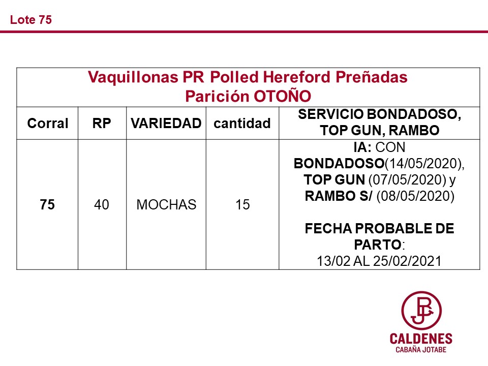 LOTE 75, VAQUILLONAS PR PREÑADAS (CORRAL 50) Lote Anterior Volver al remate Lote Siguiente Ficha Contacto Ofertar Buenos Aires - Ficha del Lote Identificador: #80193 Cantidad: 15 Categoría: Vaquillonas preñadas Pedigree Descripción: Vaquillonas PR Polled Hereford Preñadas Parición OTOÑO Plazo Consultar Raza Hereford Buenos Aires - Ofertar Aún no tiene ofertas Plazo: Contado 30 días 45 días 60 días 90 días 120 días 180 días Contado, 30 y 60 dias Su Oferta en $: − + Step: -3.000,00 / +3.000,00 Programar puja hasta: Programar puja hasta Aumentar puja programada 66000 120000 **Oferta al bulto Iniciar sesión para ofertar Ofertar Listado de preofertas $ Fecha/Hora Estado Este lote aún no tiene preofertas. 52 Visualizaciones ClicData Contacto Comercial a cargo: Paulo Empresa: Caldenes Agropecuaria Nombre*: Teléfono* : E-mail* : Mensaje Por informes y consultas 03382 15 418112 Enviar Registrese gratis Este contenido Exclusivo está disponible sólo para usuarios registrados Ingresar