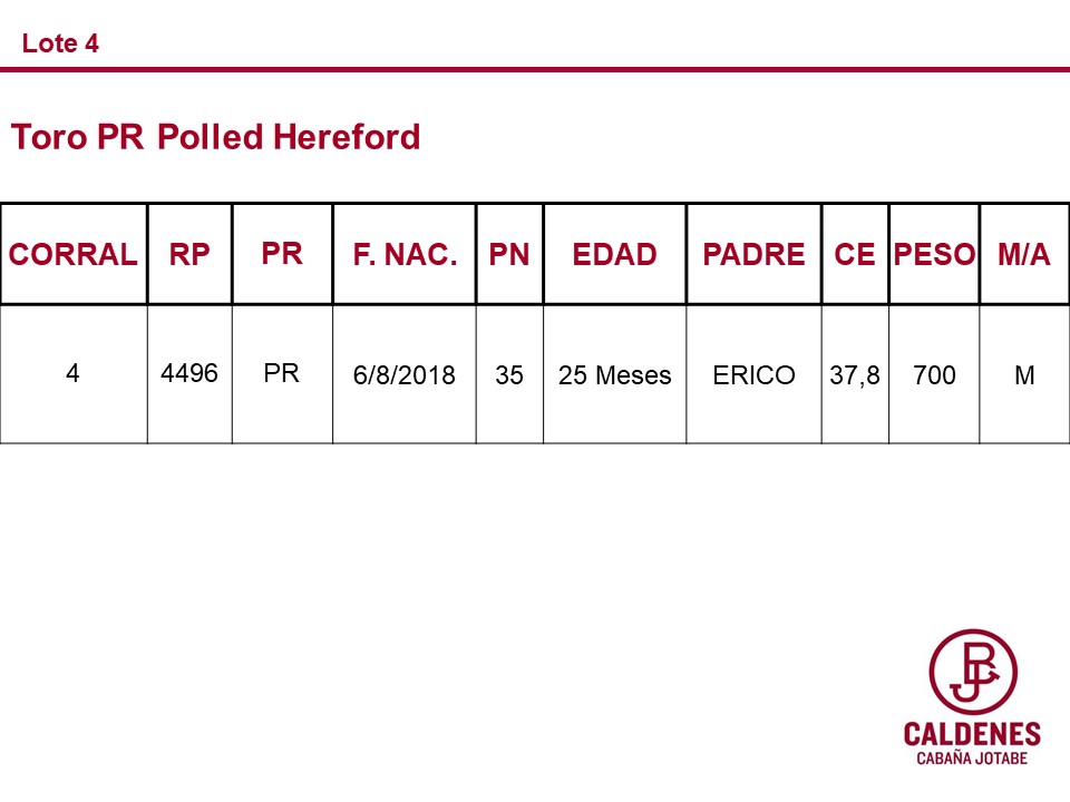 LOTE 4, TOROS PR 🔥 🔥 🔥 Lote Anterior Volver al remate Lote Siguiente Información del Lote Animal Pedigree Ofertar Contacto Buenos Aires - Información del Lote Identificador: #80215 Categoría Toros PR Raza Hereford Departamento Buenos Aires Plazo Consultar Buenos Aires - Ofertar Aún no tiene ofertas Animales: 4496 Plazo: Contado 30 días 45 días 60 días 90 días 120 días 180 días Contado, 30 y 60 dias Su Oferta en $: − + Step: -5.000,00 / +5.000,00 Programar puja hasta: Programar puja hasta Aumentar puja programada 150000 240000 **Oferta al bulto Iniciar sesión para ofertar Ofertar Listado de preofertas $ Fecha/Hora Estado Este lote aún no tiene preofertas. 338 Visualizaciones ClicData Animal RP 4496 PRECIO BASE 0.00 RP 4496 PRECIO BASE 0.00 Pedigree Contacto Comercial a cargo: Paulo Empresa: Caldenes Agropecuaria Nombre*: E-mail* : Mensaje Por informes y consultas 03382 15 418112 Enviar Registrese gratis Este contenido Exclusivo está disponible sólo para usuarios registrados Ingresar