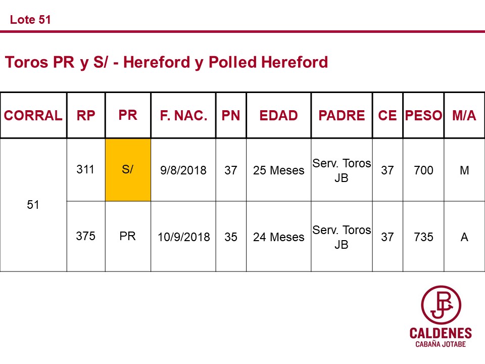 LOTE 51, TOROS PR - S/ Lote Anterior Volver al remate Lote Siguiente Información del Lote Animales del Lote Pedigree Ofertar Contacto Buenos Aires - Información del Lote Identificador: #80239 Cantidad 2 Categoría Toros PR Raza Hereford Departamento Buenos Aires Plazo Consultar Buenos Aires - Ofertar TORO 311 PREOFERTADO TORO 375 DISPONIBLE CONSULTE! Aún no tiene ofertas Animales: 311 375 Plazo: Contado 30 días 45 días 60 días 90 días 120 días 180 días Contado, 30 y 60 dias Su Oferta en $: − + Step: -5.000,00 / +5.000,00 Programar puja hasta: Programar puja hasta Aumentar puja programada 150000 240000 **Oferta al bulto Iniciar sesión para ofertar Ofertar Listado de preofertas $ Fecha/Hora Estado Este lote aún no tiene preofertas. 114 Visualizaciones ClicData Animales del Lote RP 311 375 PRECIO BASE 0.00 0.00 RP 311 PRECIO BASE 0.00 RP 375 PRECIO BASE 0.00 Pedigree Contacto Comercial a cargo: Paulo Empresa: Caldenes Agropecuaria Nombre*: E-mail* : Mensaje Por informes y consultas 03382 15 418112 Enviar Registrese gratis Este contenido Exclusivo está disponible sólo para usuarios registrados Ingresar
