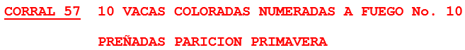 LOTE 57, VACAS PURAS CONTROLADAS PREÑADAS Lote Anterior Volver al remate Lote Siguiente Información del Lote Pedigree Contacto Buenos Aires - Gral Pinto Información del Lote Identificador: #81152 Cantidad 10 Categoría Vacas PC preñadas Raza Aberdeen Angus Negro Departamento Buenos Aires Ubicación Gral Pinto Plazo pago a Consultar días Buenos Aires - Gral Pinto 161 Visualizaciones ClicData Pedigree Contacto Empresa: MARTÍN G. LALOR S.A. Nombre*: E-mail* : Mensaje Enviar Registrese gratis Este contenido Exclusivo está disponible sólo para usuarios registrados Ingresar