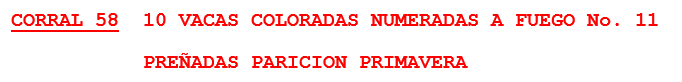 LOTE 58, VACAS PURAS CONTROLADAS PREÑADAS 🔥 🔥 🔥 Lote Anterior Volver al remate Lote Siguiente Información del Lote Pedigree Contacto Buenos Aires - Gral Pinto Información del Lote Identificador: #81153 Cantidad 10 Categoría Vacas PC preñadas Raza Aberdeen Angus Negro Departamento Buenos Aires Ubicación Gral Pinto Plazo pago a Consultar días Buenos Aires - Gral Pinto 200 Visualizaciones ClicData Pedigree Contacto Empresa: MARTÍN G. LALOR S.A. Nombre*: E-mail* : Mensaje Enviar Registrese gratis Este contenido Exclusivo está disponible sólo para usuarios registrados Ingresar